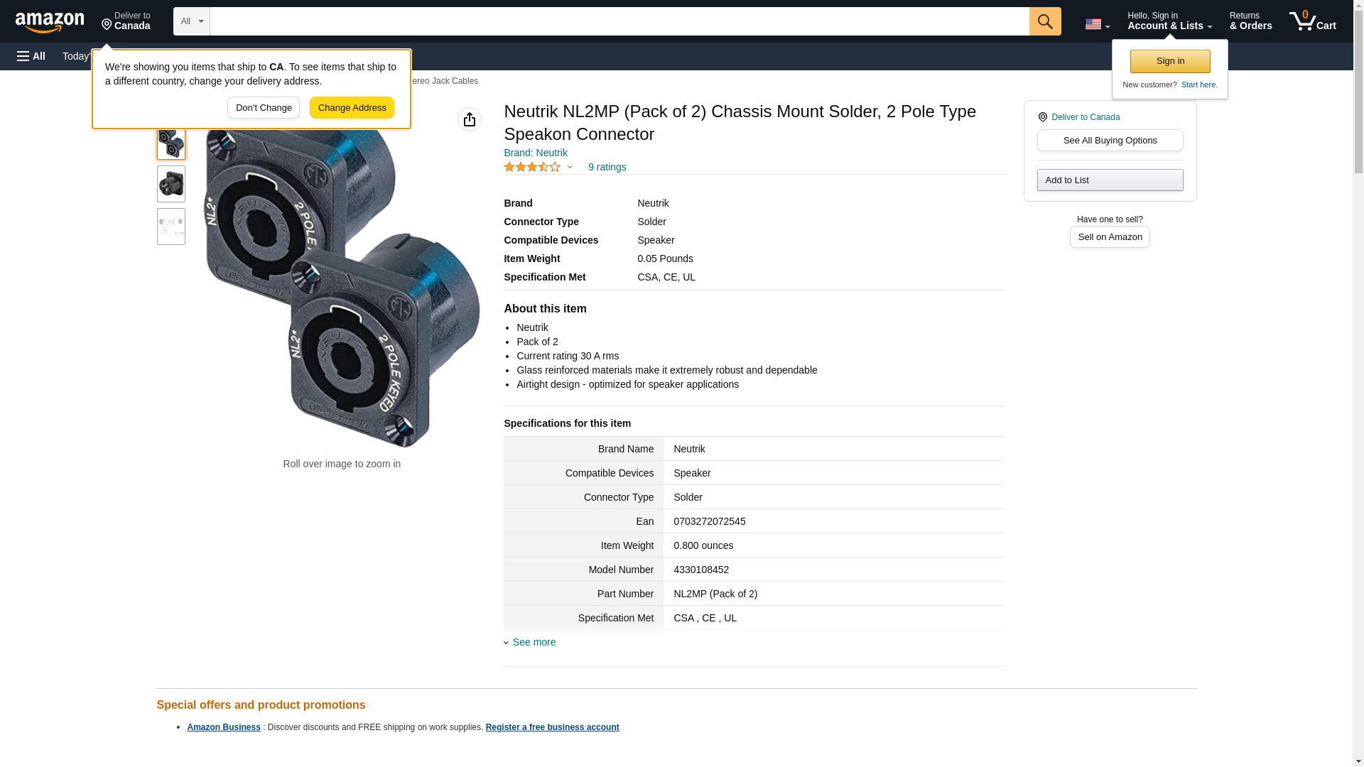 Neutrik NL2MP (PACK OF 2) Chassis Mount Solder, 2 Pole Type Speakon Connector