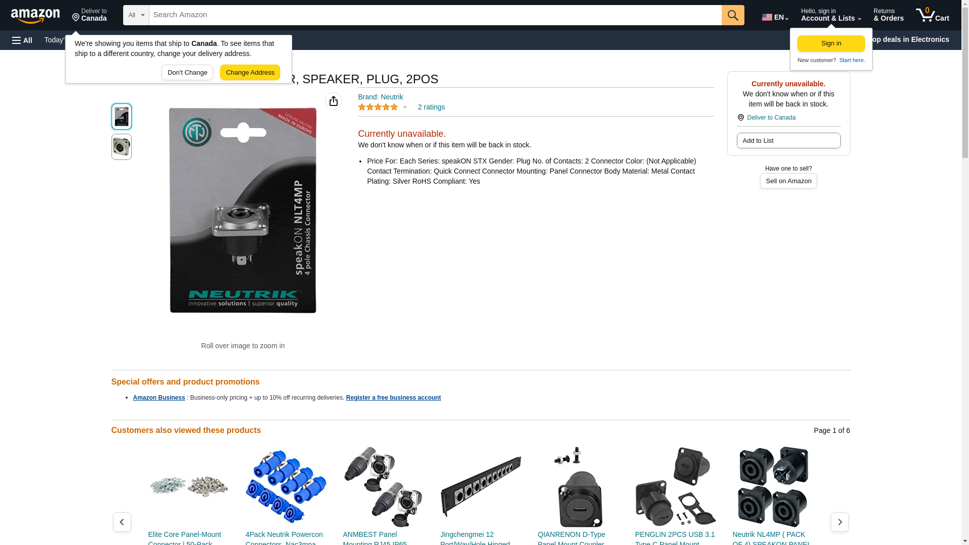 - Price For: Each Series: speakON STX Gender: Plug No. of Contacts: 2 Connector Color: (Not Applicable) Contact Termination: Quick Connect Connector Mounting: Panel Connector Body Material: Metal Contact Plating: Silver RoHS Compliant: Yes