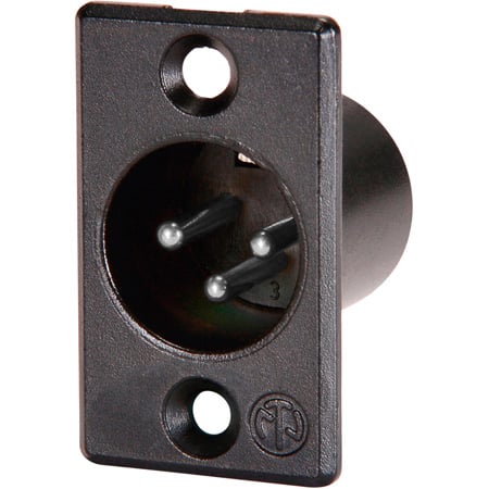 Smallest available traditional style metal panel mount connector with large solder cups for ease hard wiring. 3 pole male receptacle, solder contacts, black metal housing, silver contacts. Smallest available hard wiring receptacles with large solder cups. Compatible with Switchcraft D*M, D*F; Cannon XLB2*31, XLB2*32.</p>