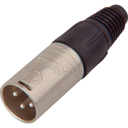 3 pole male cable connector with Nickel housing and silver contacts.</p><p>The "industry standard" XLR cable connector, easy to assemble with only 4 parts and no screws. Compact design with sturdy diecast shell, fibreglass reinforced hard plastic insert and chuck type strain relief for secure clamping of all cables.</p>