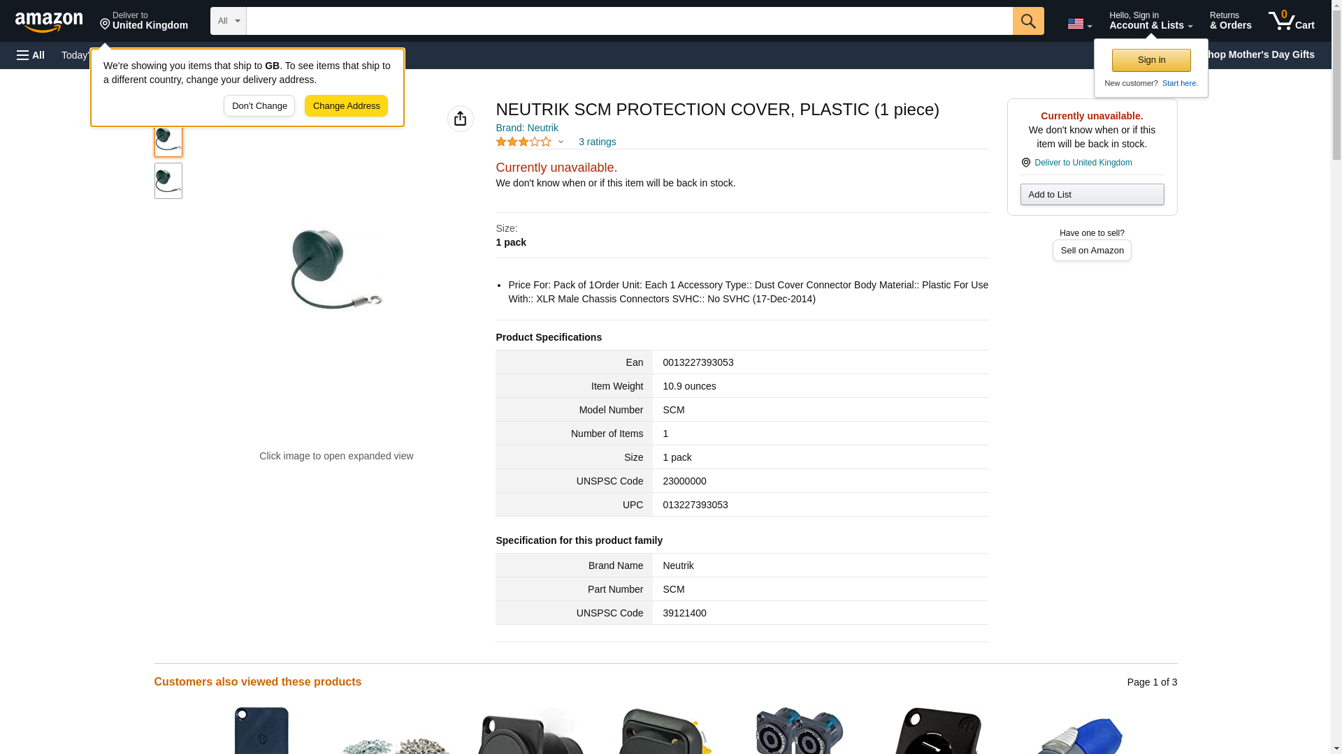 | Feature | <b>Price For:</b> Pack of 1<b>Order Unit:</b> Each\xa01 <b>Accessory Type:</b>: Dust Cover <b>Connector Body Material:</b>: Plastic <b>For Use With:</b>: XLR Male Chassis Connectors <b>SVHC:</b>: No SVHC (17-Dec-2014) |