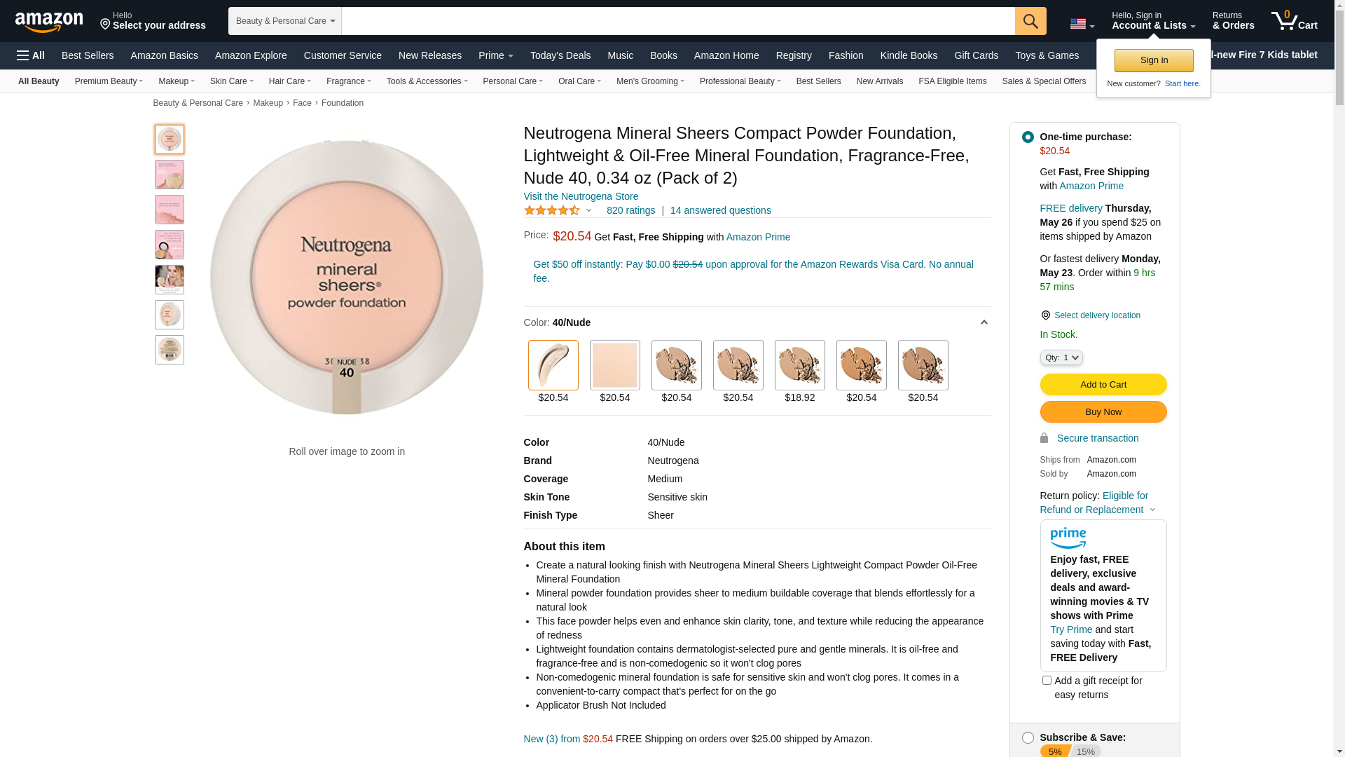 Neutrogena Mineral Sheers Compact Powder Foundation, Lightweight & Oil-Free Mineral Foundation, Fragrance-Free, Nude 40,.34 oz (Pack of 2): Maxedbuy.com