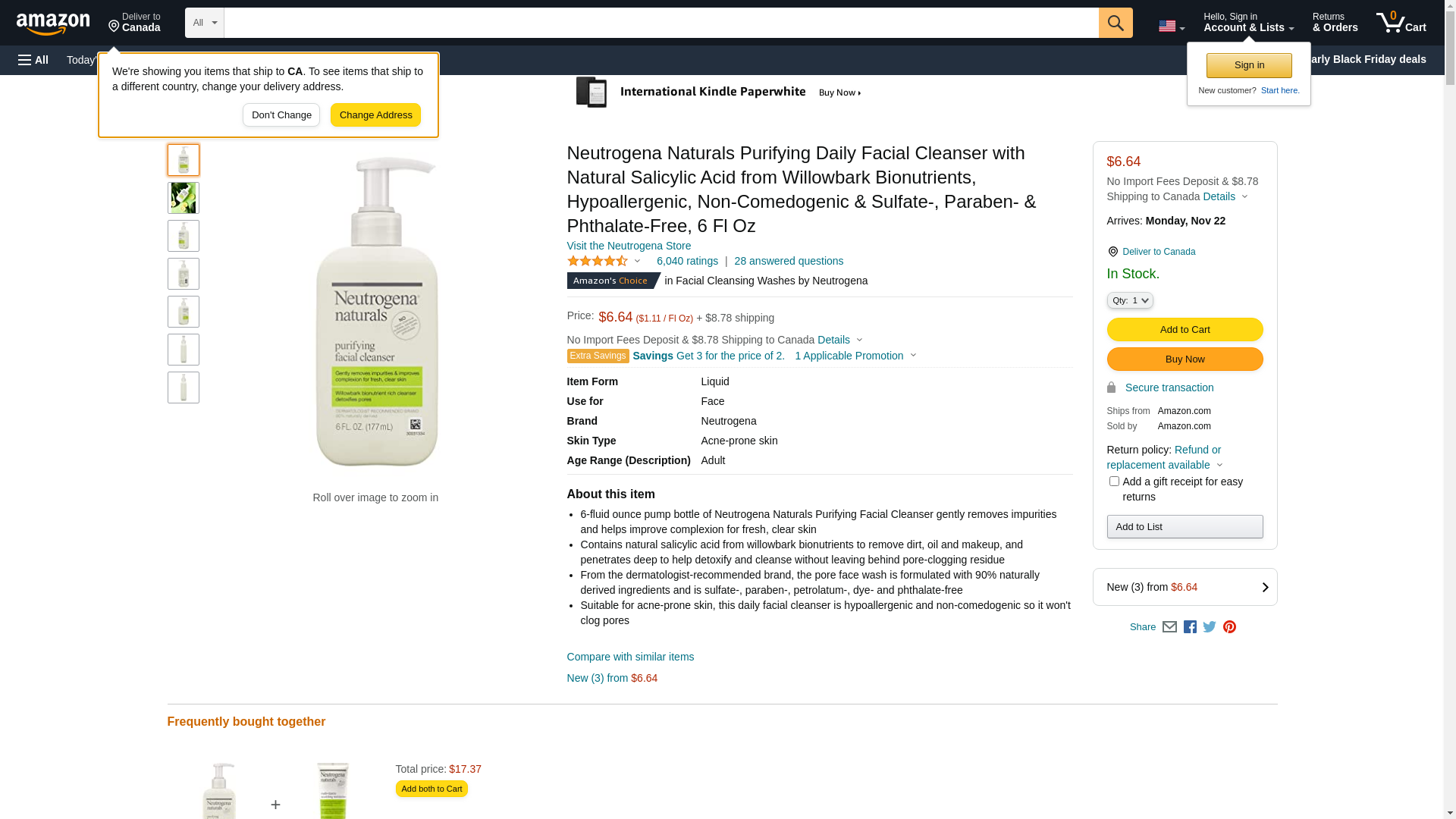 | Feature | 6-fluid ounce pump bottle of facial cleanser |