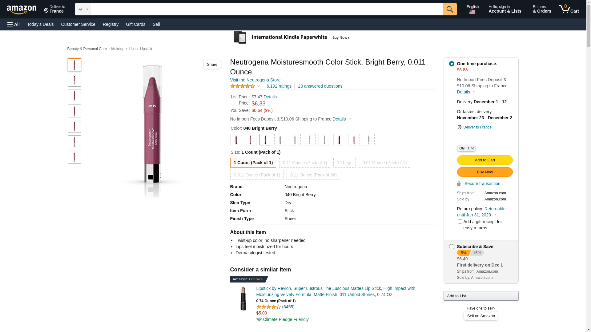 Neutrogena Moisturesmooth Color Stick, 40 Bright Berry, .011 Oz.: Maxedbuy.com