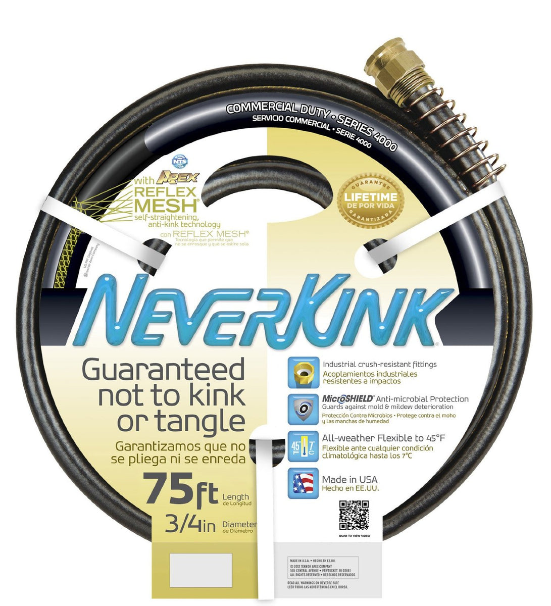 Reflex mesh for self straightening, will not kink, twist or tangle. Crush resistant fittings. Anti-microbial protection, guards against mold and mildew that can cause hose deterioration. All weather flexible to 45 degrees F. Solid brass, crash resistant couplings and power coil collar helps prevent kinking at the fauce