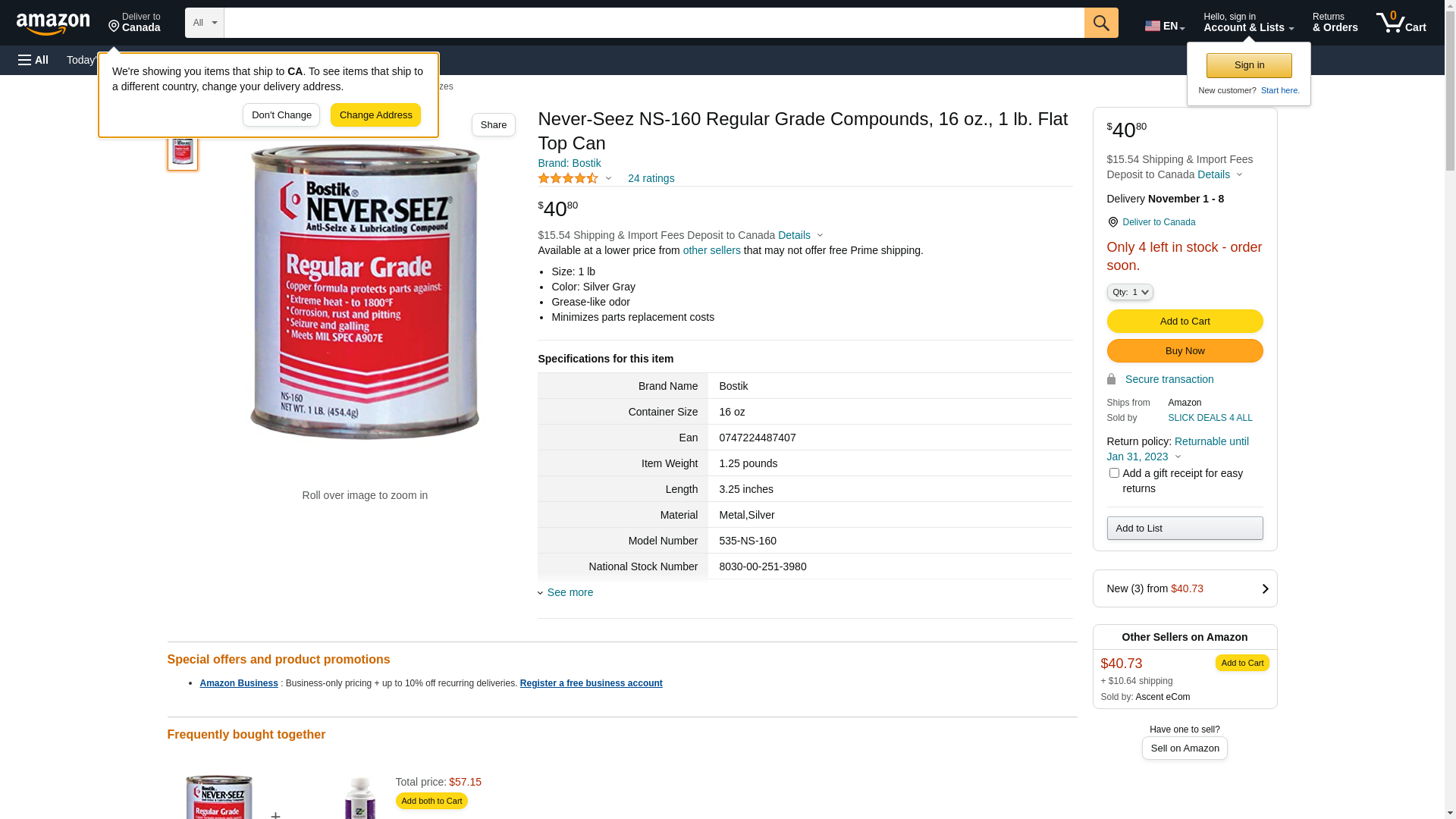 Never-Seez NS-160 Regular Grade Compounds, 16 oz., 1 lb. Flat Top Can