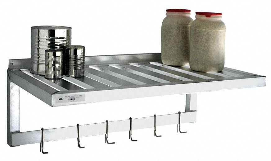 SHELF, WALL-MOUNTED, T-BAR DESIGN,600 LB WEIGHT CAPACITY, 1-3/4" BETWEEN BARS, ALUMINUM CONSTRUCTION, 20"W X 48"L, WITH FULL-LENGTH SINGLE BAR POT RA 198190