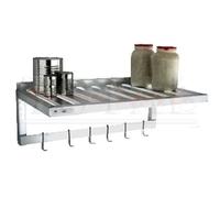 Increase storage space with these durable wall-mounted shelves. Designed with solid strip brackets that allow you infinite installation capabilities.<br>Model #: 1122PRMaterial: AluminumDimensions (D x L): 20" x 48"Framework: 1-1/2" x 1-1/2" x .070" wall tubingLaterals: 1-1/4" x 2-1/4" x .100" wall T-BarPot Rack: (7) 1/4" x 2" strapsWeight Capacity: 600 lbsLifetime Guarantee against rust and corrosionFive-Year Guarantee against workmanship and material defectsNSF Certified