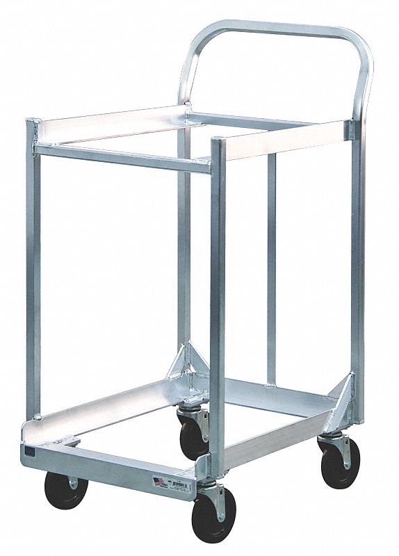 General Purpose Dolly, Load Capacity 1200 lb., Material Aluminum, Color Silver, Overall Length 30 In., Overall Width 21 In., Overall Height 44-1/2 In., Caster Dia. 5 In., Caster Type (4) Swivel, Caster Material Polyolefin, Shelf Length 30 In., Shelf Width 21 In., For Use With 18x26 Pans, Includes Sides and Handle, 2 Tier Angle