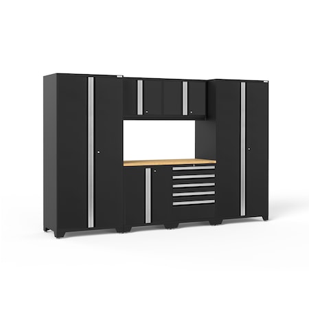 NewAge Products Pro Series Black 7 Piece Set, Garage Cabinets, Black with Bamboo Worktop, 64060