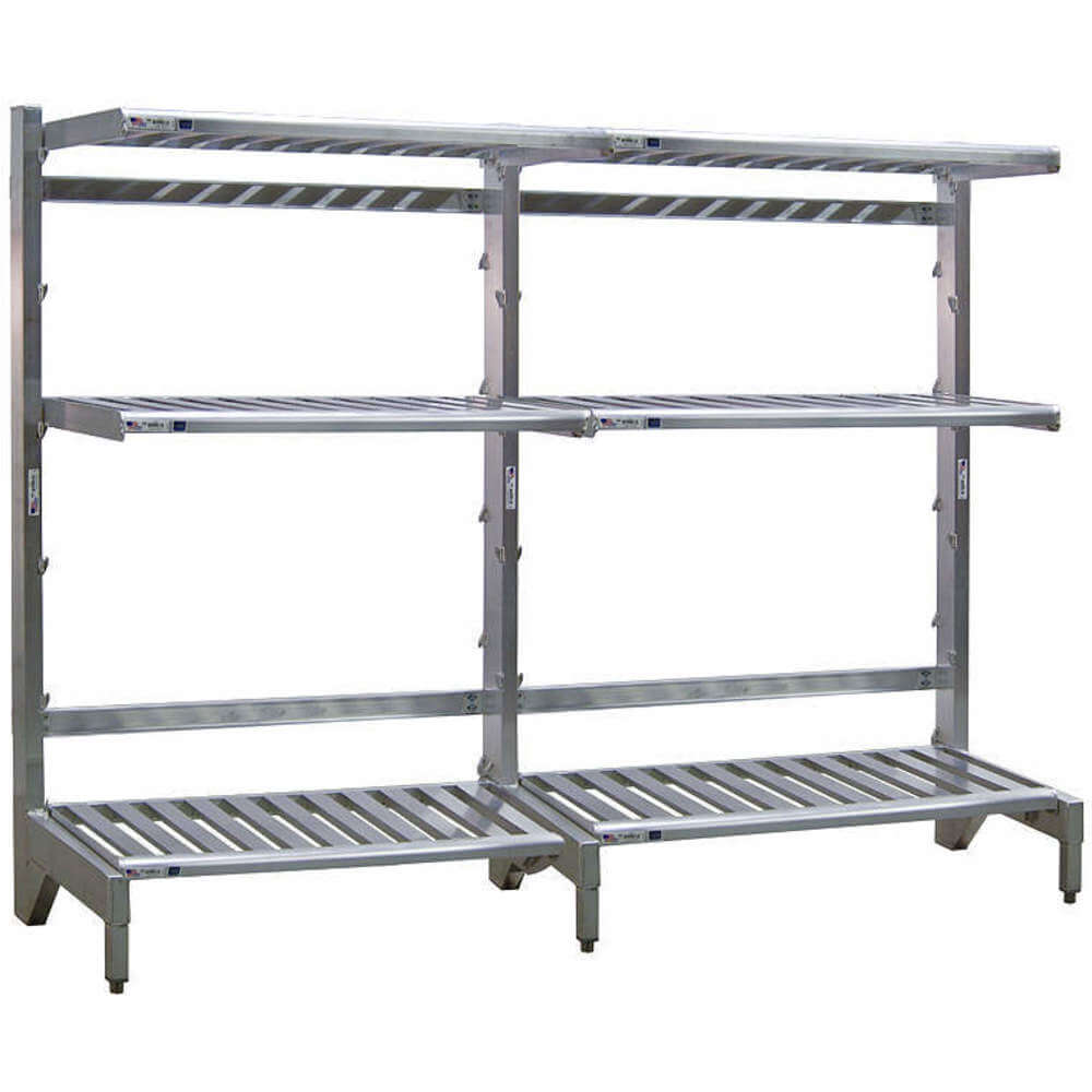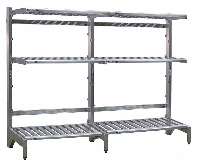 Cantilever Rack, Load Capacity per Shelf 300 lb, Aluminum, Number of Shelves 3, Overall Depth 21 in, Overall Height 72 in, Overall Width 96 in, Whole Unit Load Capacity 900 lb, Shelving Configuration Standalone, Shelf Style T-Bar, Shelf Gauge 10 ga, Shelf Length 18 in, Shelf Lip Type No Lip, Base Length 96 In., Column Gauge 11 ga, Number of Usable Sides 1