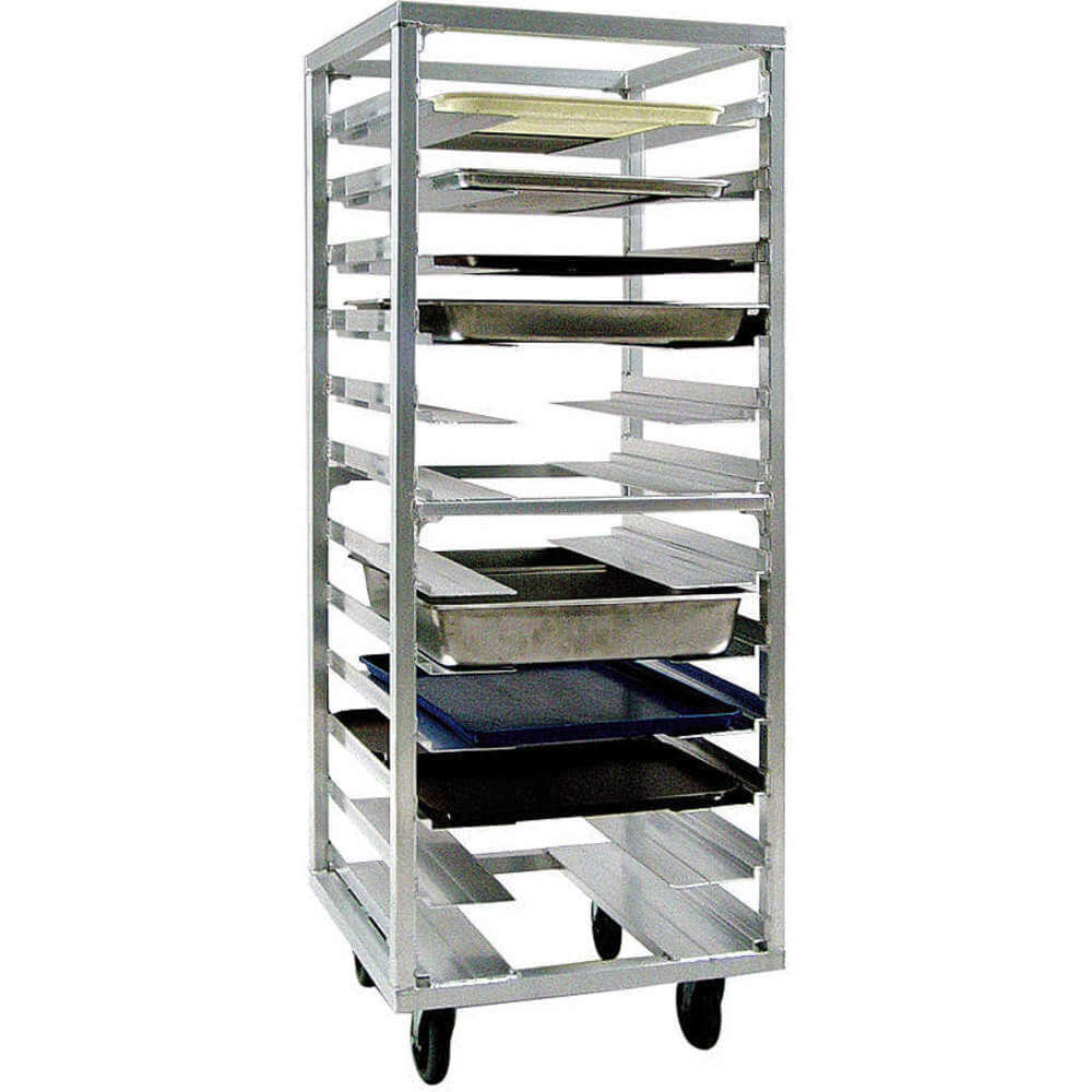 | Feature | Roll-In Pan Rack, roll-in, 12 universal alum. guides, 4-1/2" O.C. for 12x20 to 18x26 pans |