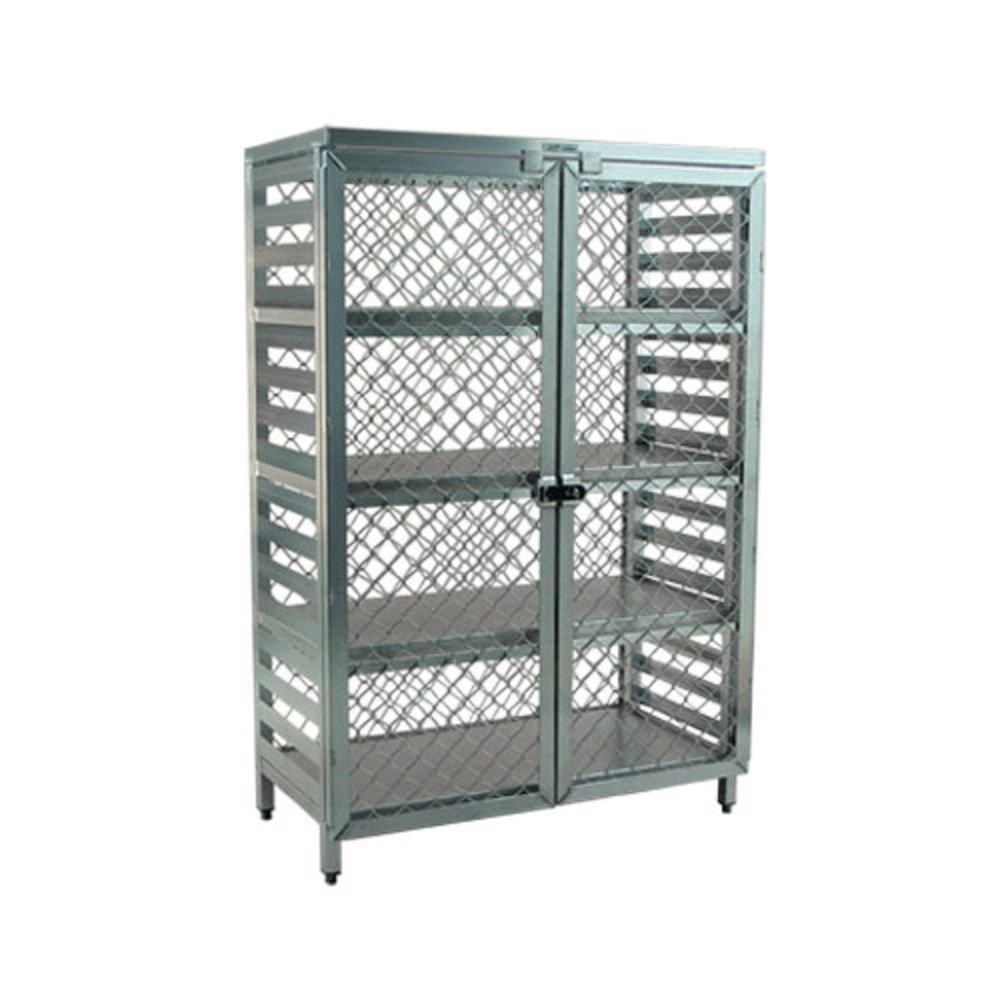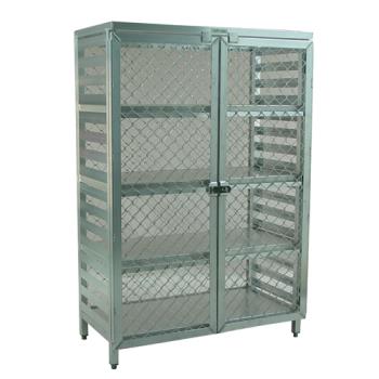 Stationary-Dimensions: 48in W x 24in D x 72in H-4 interior shelves 22in x 45in-Double doors with stainless steelhasp-Replaceable stainless steelhinges-All welded aluminum construction-4 adjustable feet
