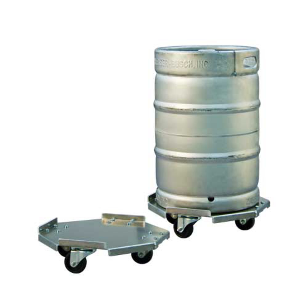 DOLLY, KEG, ONE PIECE, OCTAGON SHAPE, 17-1/4" X 17-1/4", TRANSPORTS ONE KEG UP TO 16-3/4" DIA., ALUMINUM, (4) 3" PLATFORM CASTERS 712567
