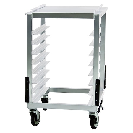 Designed for a multitude of standard food preparation applications this Slicer Mixer Stand is indispensable in the kitchen. Use as a slicer or mixer stand mobile work surface or to transport trays.<br>Model #: 98179Depth: 26"Height: 37"Width: 23-1/4"Capacity: 8 pansFramework: 1-1/2" x 1-1/2" x .070" wall tubingRunners: 3/4" x 1-9/16" x .100" wall channelTop: .125" aluminum sheetOutriggers: .080" aluminum sheet(4) 5" platform type swivel casters two with brakeLifetime Guarantee against rust and corrosionFive-Year Guarantee against workmanship and material defectsNSF Listed