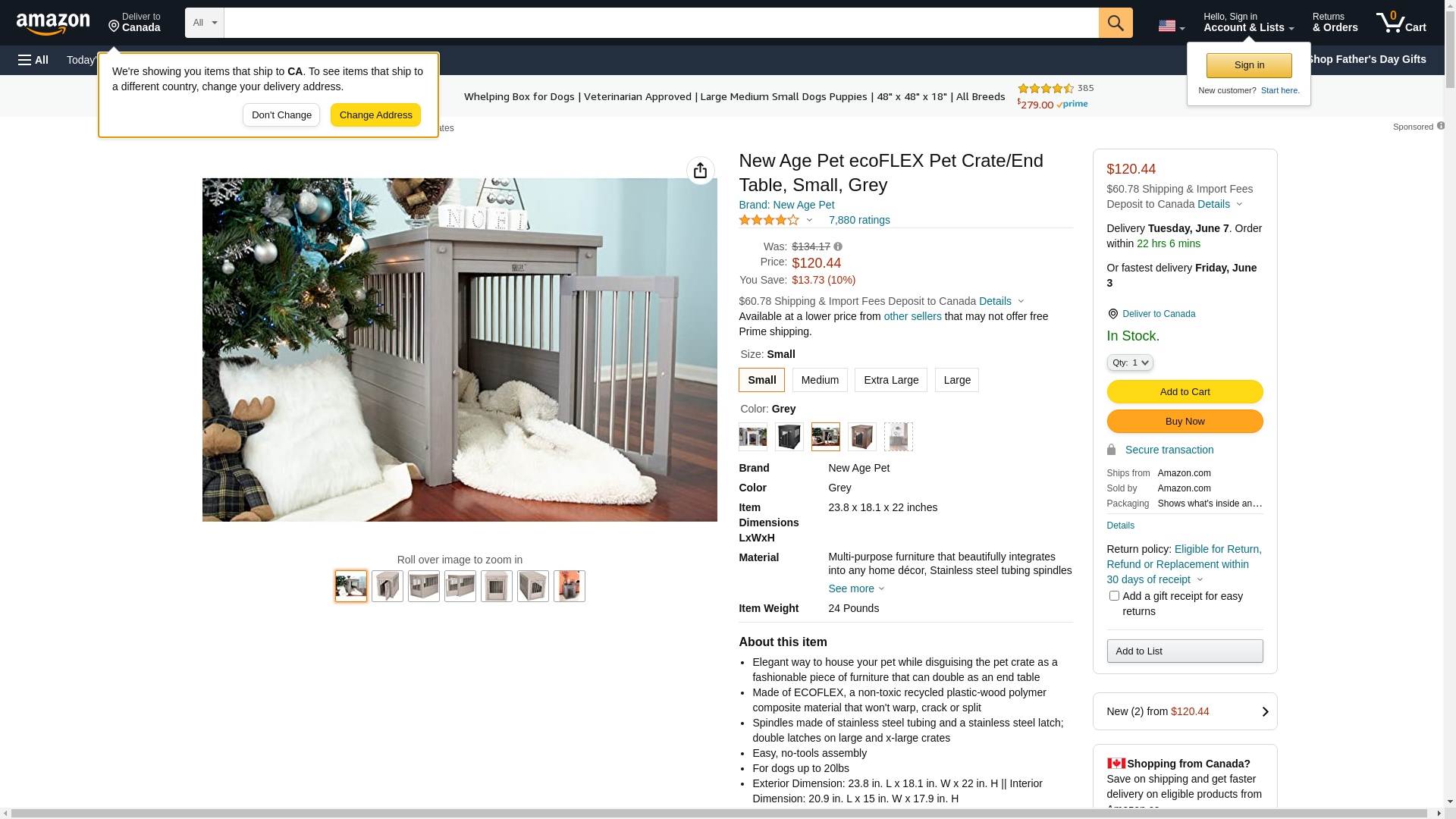 New Age Pet ecoFLEX Pet Crate/End Table, Small, Grey