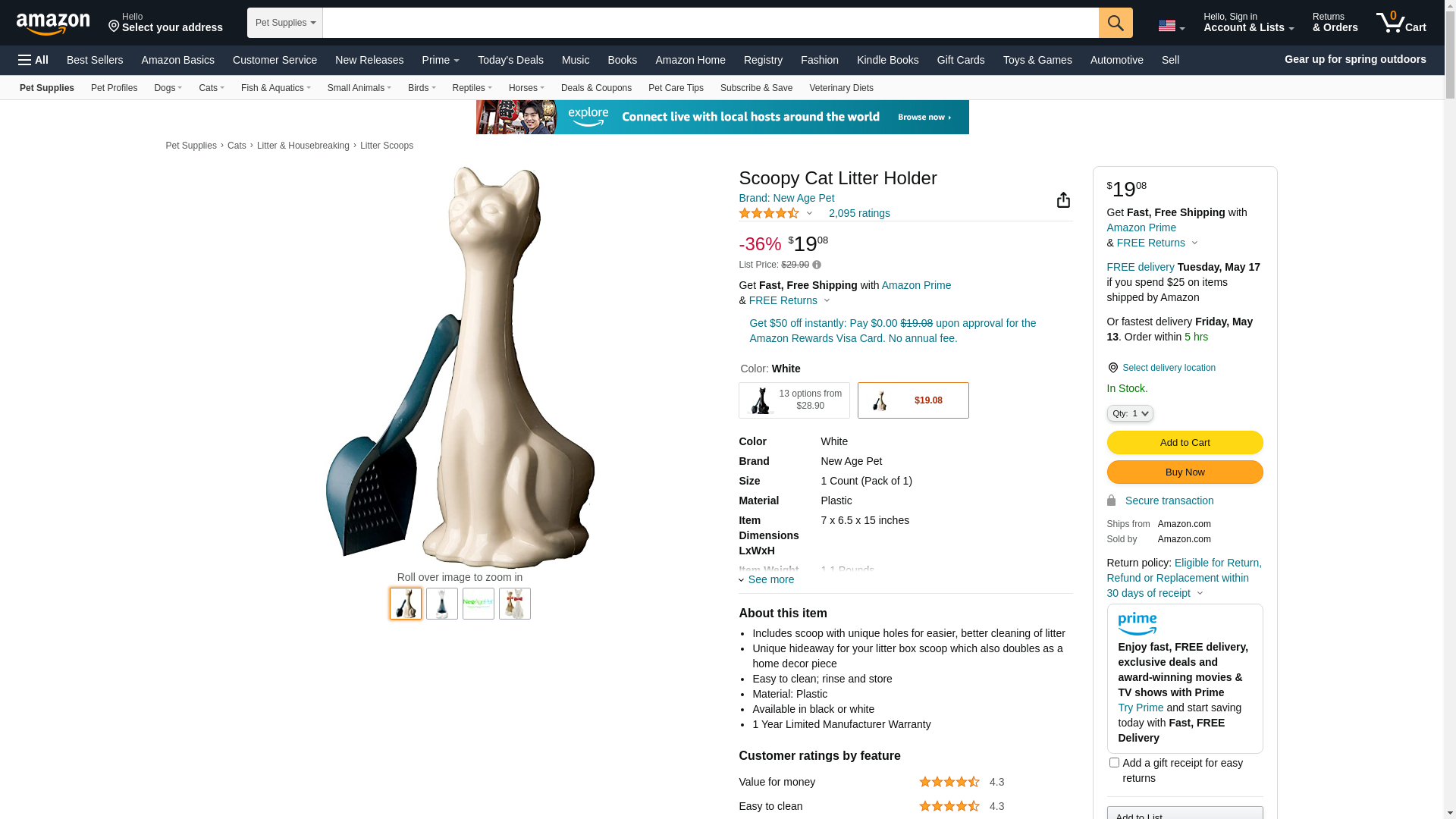 New Age Pet Scoopy Cat Litter Holder w/Scoop,White (IND003W)