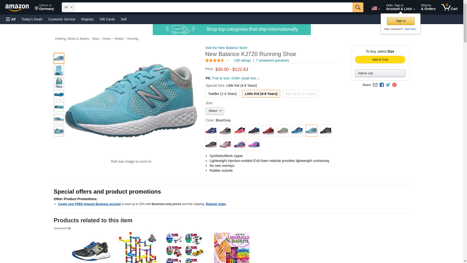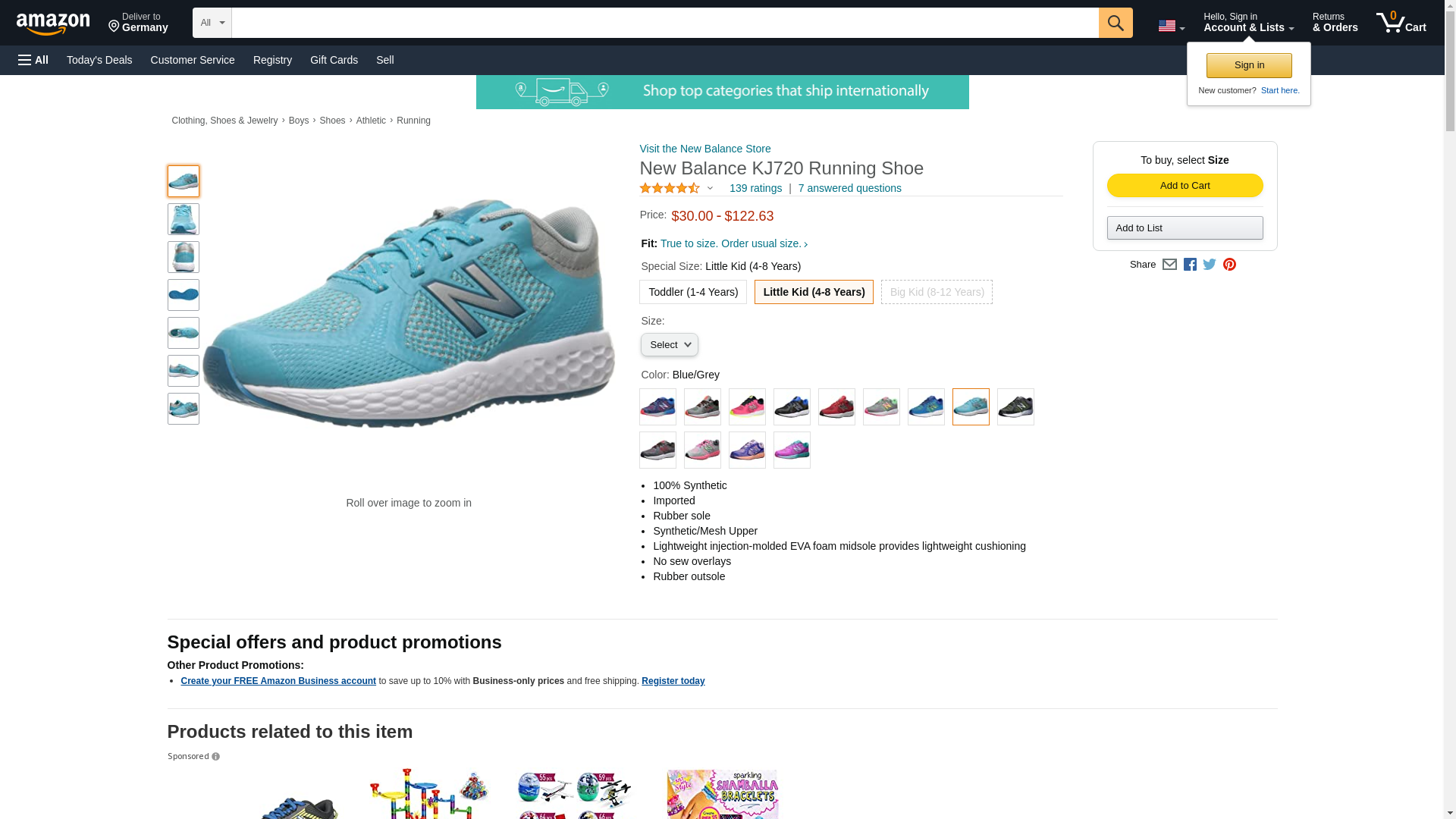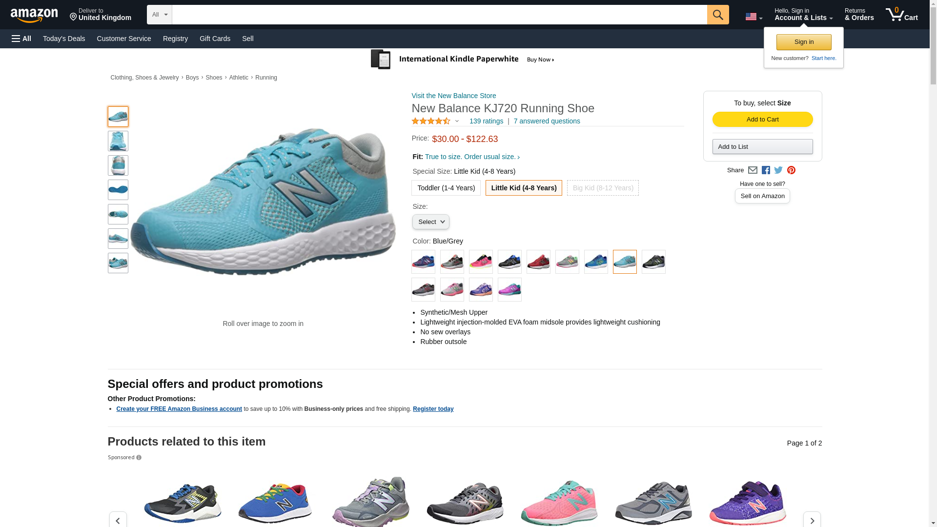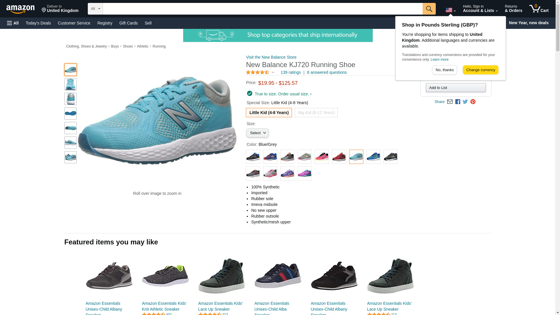 New Balance KJ720 Running Shoe, Blue/Grey, 4.5 Medium US Little Kid
