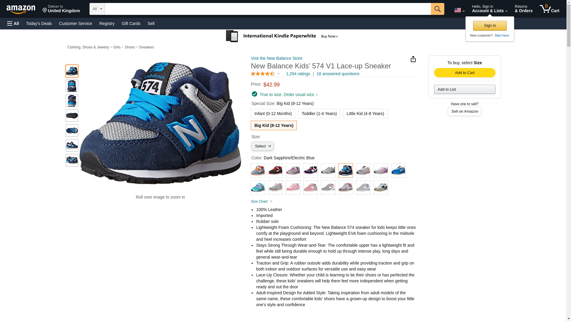 New Balance Kid's 574 V1 Core Lace-Up Sneaker, Dark Sapphire/Electric Blue, 4.5 W US Big Kid