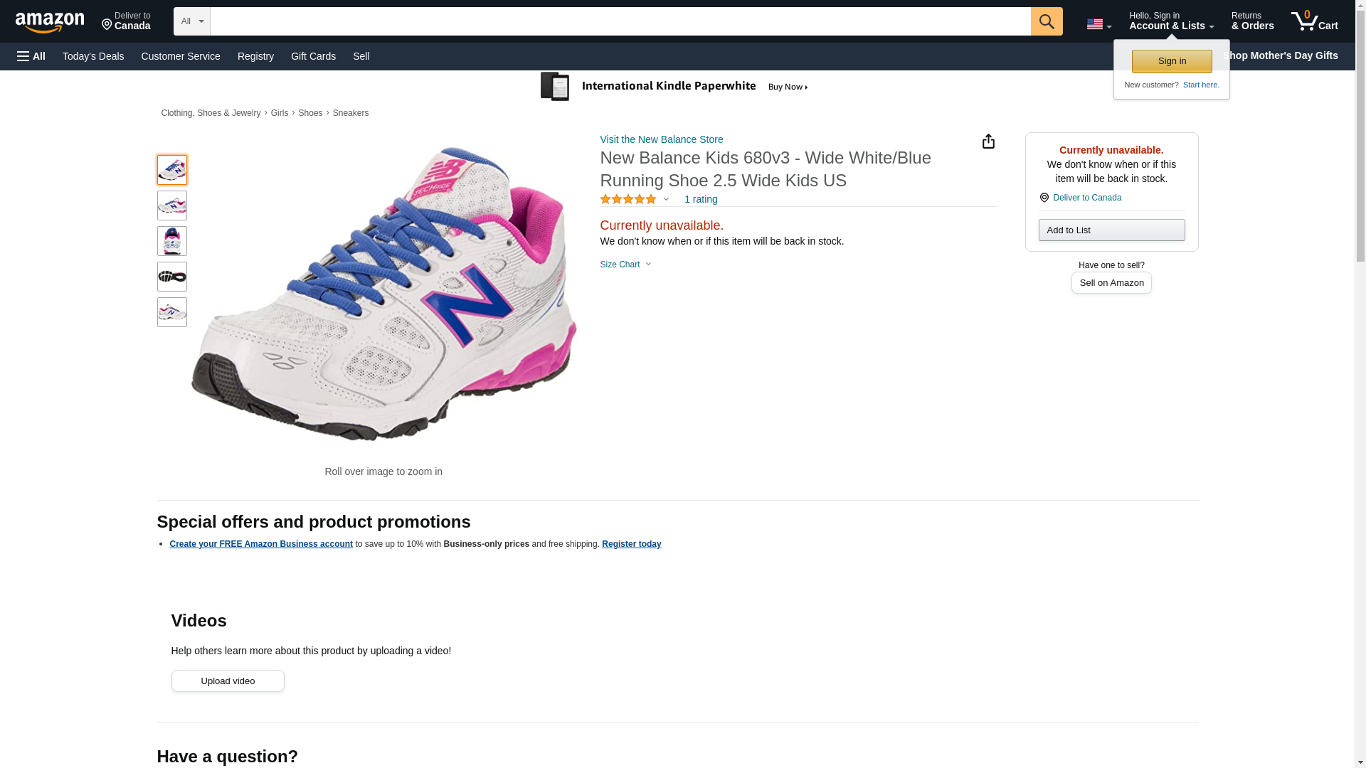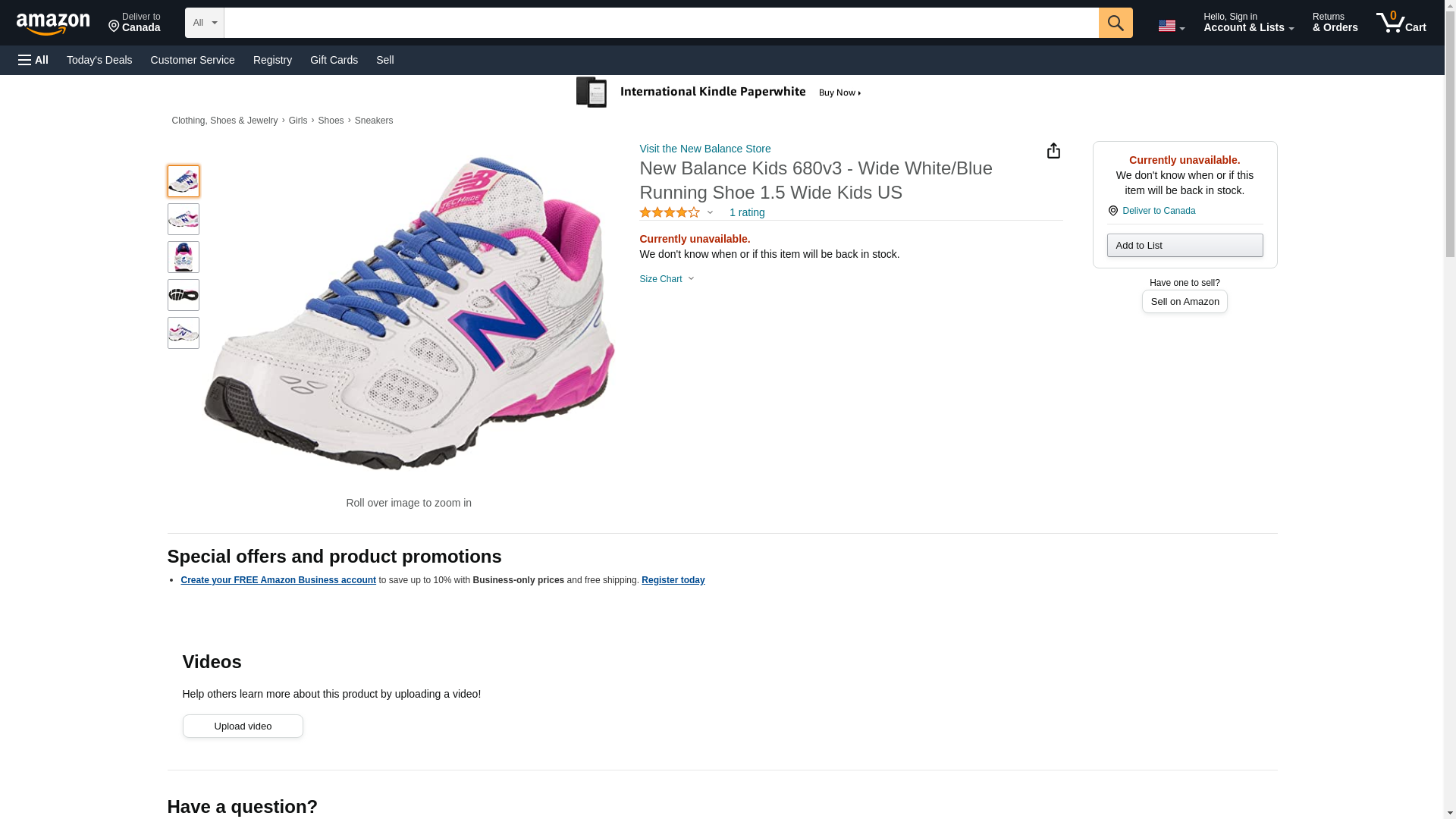 New Balance Kids 680v3 - Wide White/Blue Running Shoe 11.5 Wide Kids US