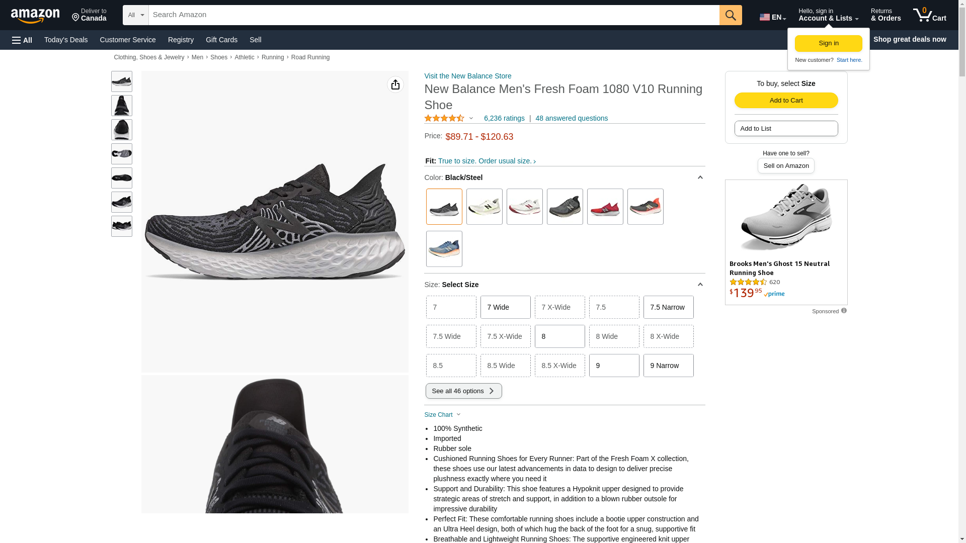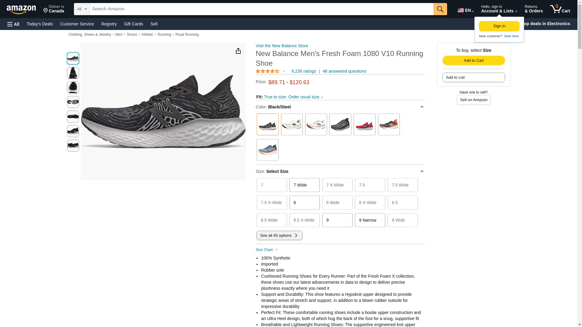 New Balance Men's Fresh Foam 1080 V10 Running Shoe, Black/Steel, 9 Narrow