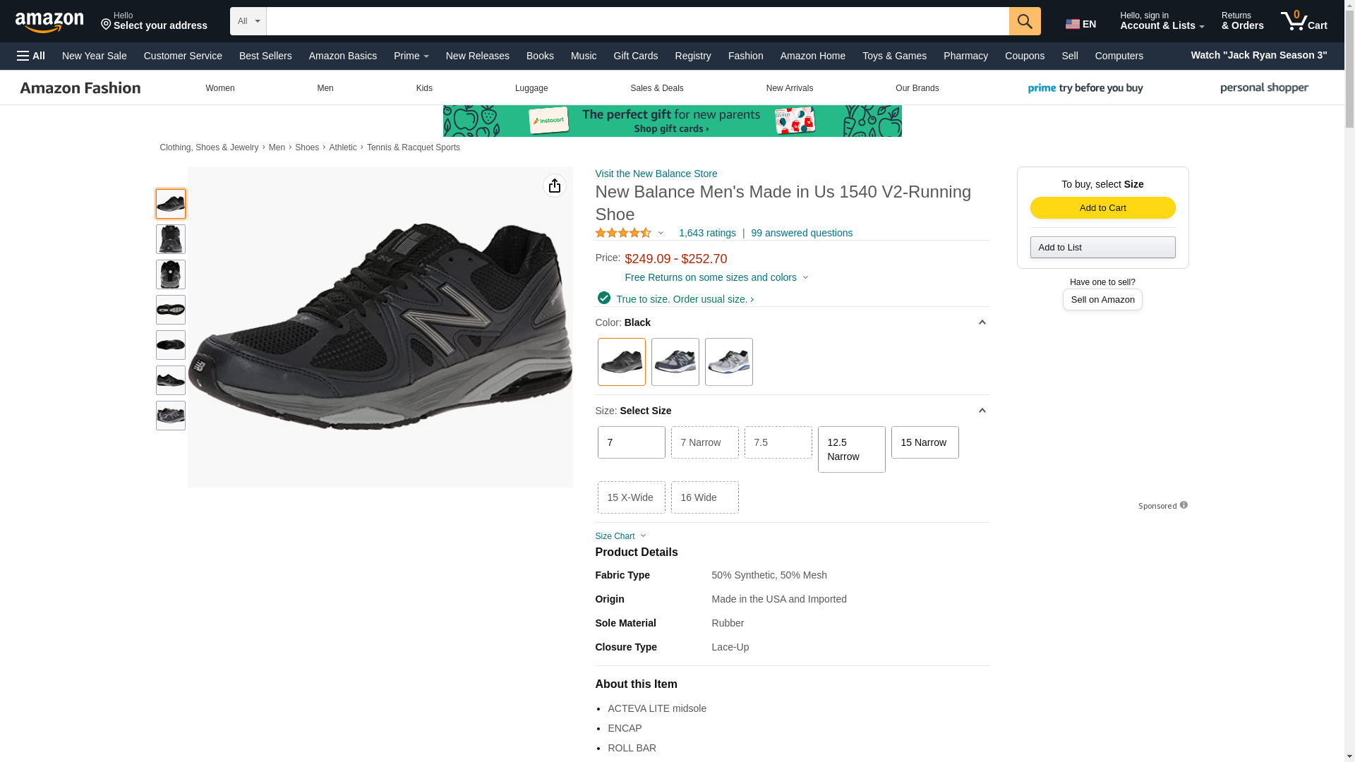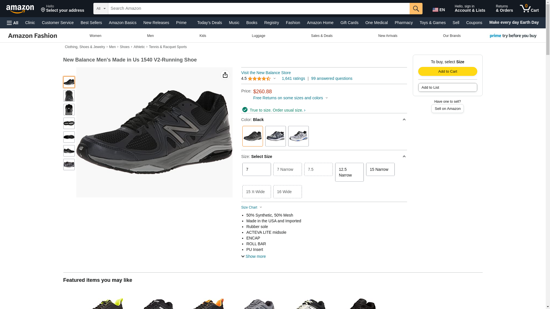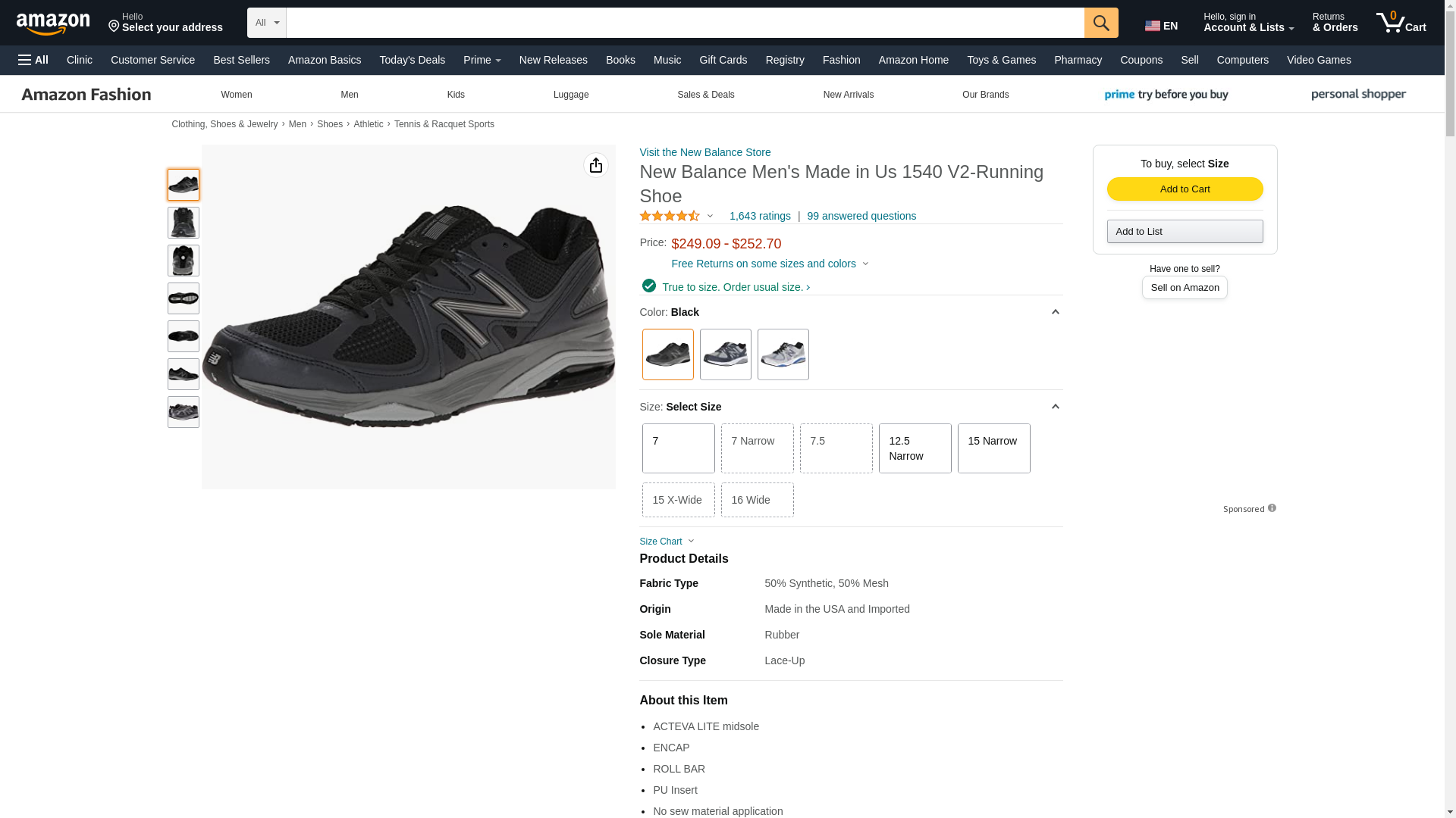<b>Brand & Style</b> - New Balance M1540 <br /> <b>Width</b> - Extra Wide (EE+) <br /> <b>True Color</b> - BK2 <b>Outsole Material</b> - Man-Made <br /> <b>Heel Height</b> - 1.5 Inches <br /> New Balance offers a wide range of high-performance, width-sized men's and women's athletic shoes tailored to a wide range of activities. New Balance prides itself on being "Endorsed By No One," believing that offering superior, technologically advanced products in a wide range of styles, sizes, and widths will sell themselves "better than any superstar athlete ever could." <br /> <br />In 1906, the company began in Boston when waiter William Riley started building arch supports for people on their feet all day, like his fellow waiters and police officers. Soon he was making shoes, and in the late 1920s he created his first running shoes. In 1960, the company introduced the first running shoes in multiple widths, establishing New Balance's reputation for athletic footwear that can fit any foot perfectly and perform superbly with exceptional comfort and support. ps7074100