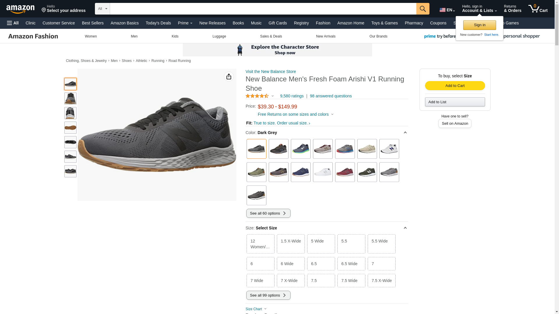 New Balance Men's Fresh Foam Arishi V1 Running Shoe, Dark Grey, 7.5