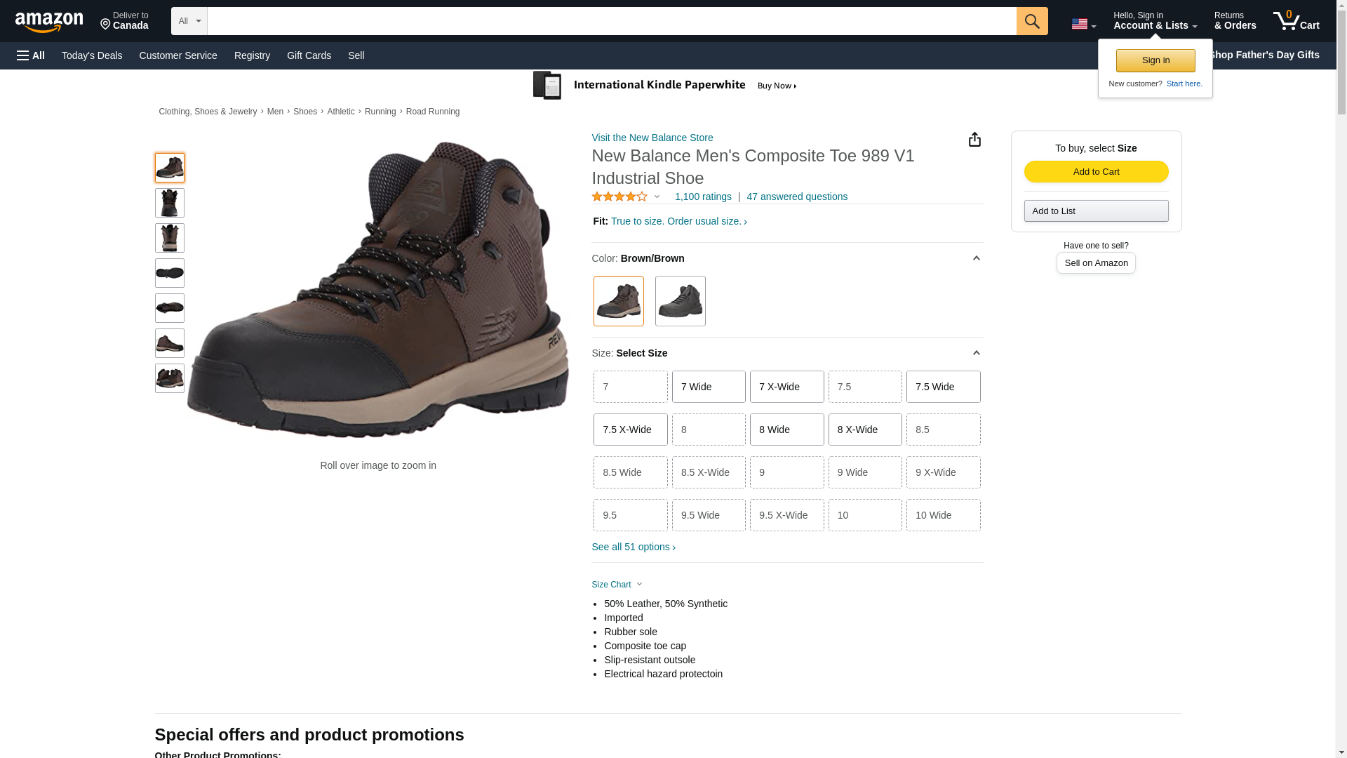 New Balance Men's Composite Toe 989 V1 Industrial Shoe, Brown/Brown, 7.5 W US