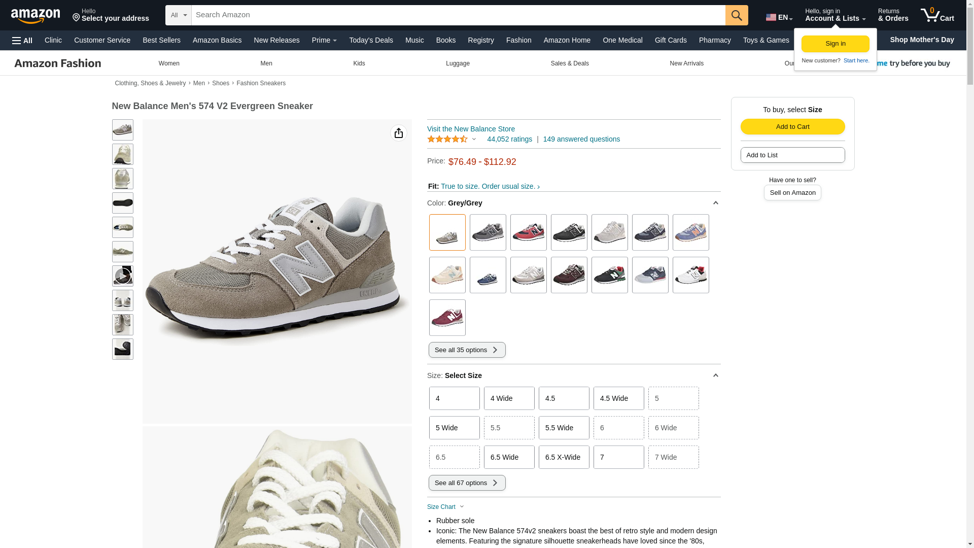 New Balance Men's 574 V2 Evergreen Sneaker, Grey/Grey, 4.5 Wide