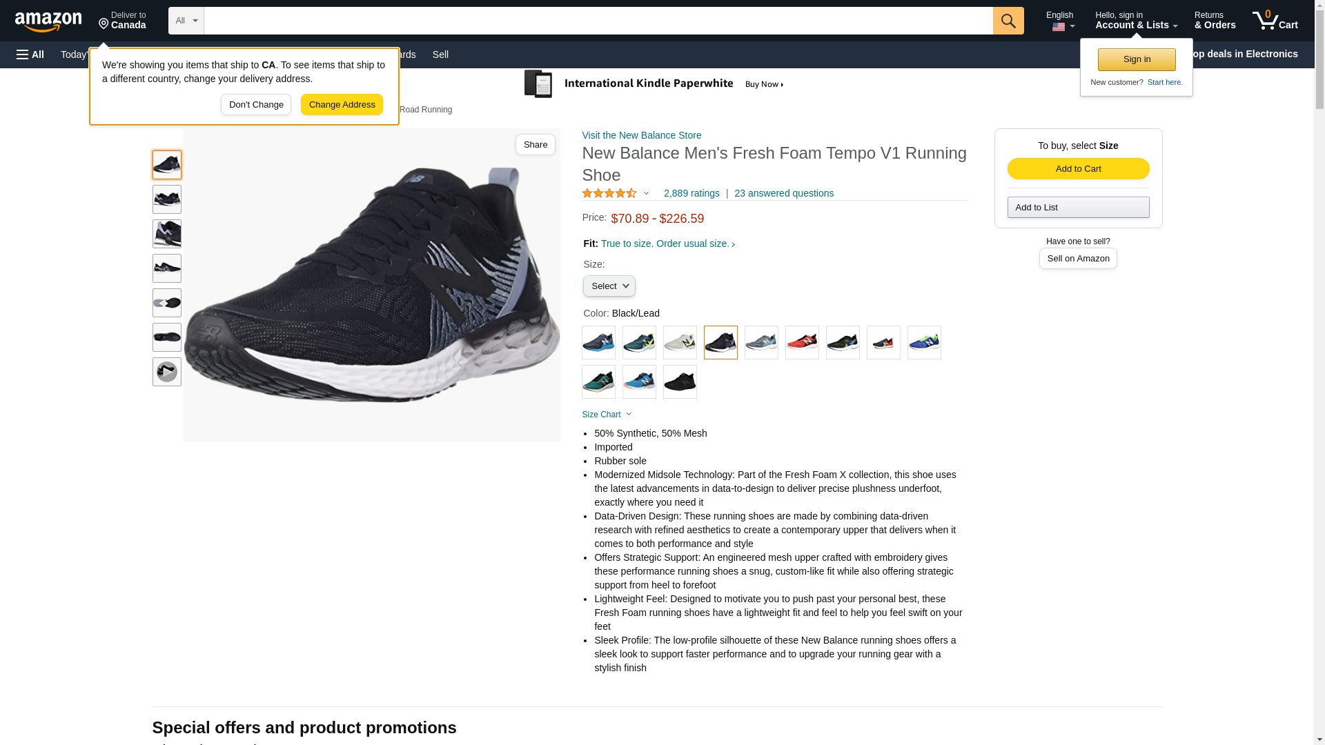 New Balance Men's, Black/Lead, Fresh Foam Tempo V1 Running Shoe, 12.5 M US