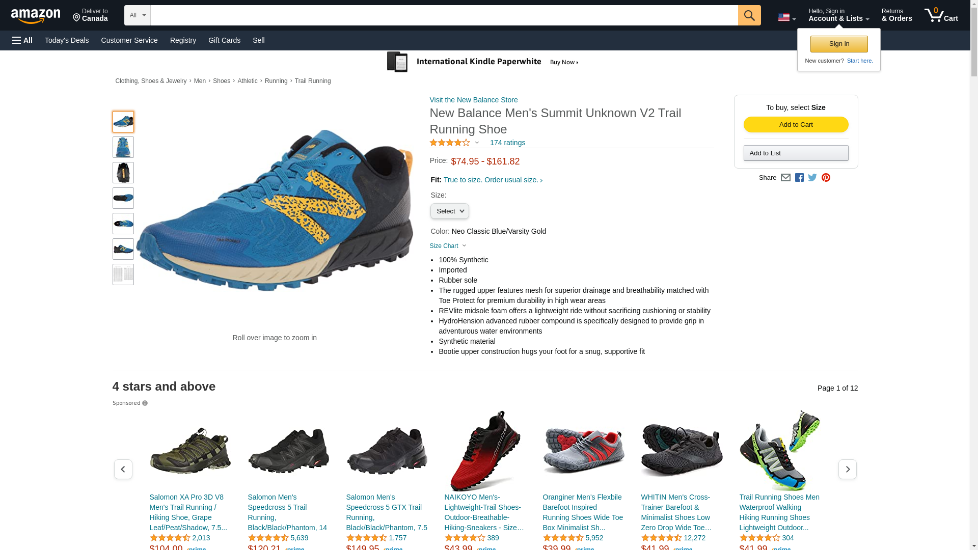 New Balance Men's Summit Unknown V2 Trail Running Shoe, Neo Classic Blue/Varsity Gold, 12.5 Wide