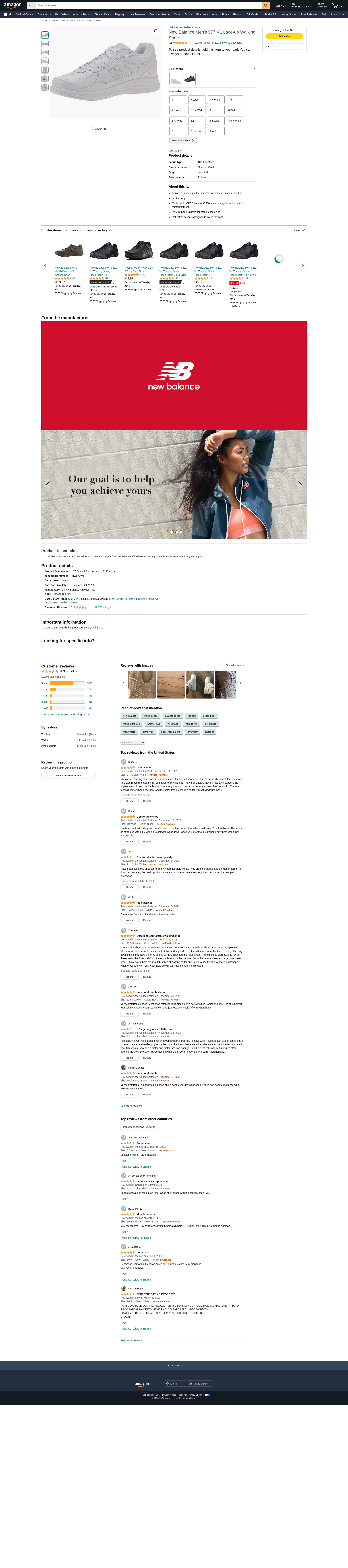 New Balance Men's MW577 White Walking Shoe - 12.5 2E US