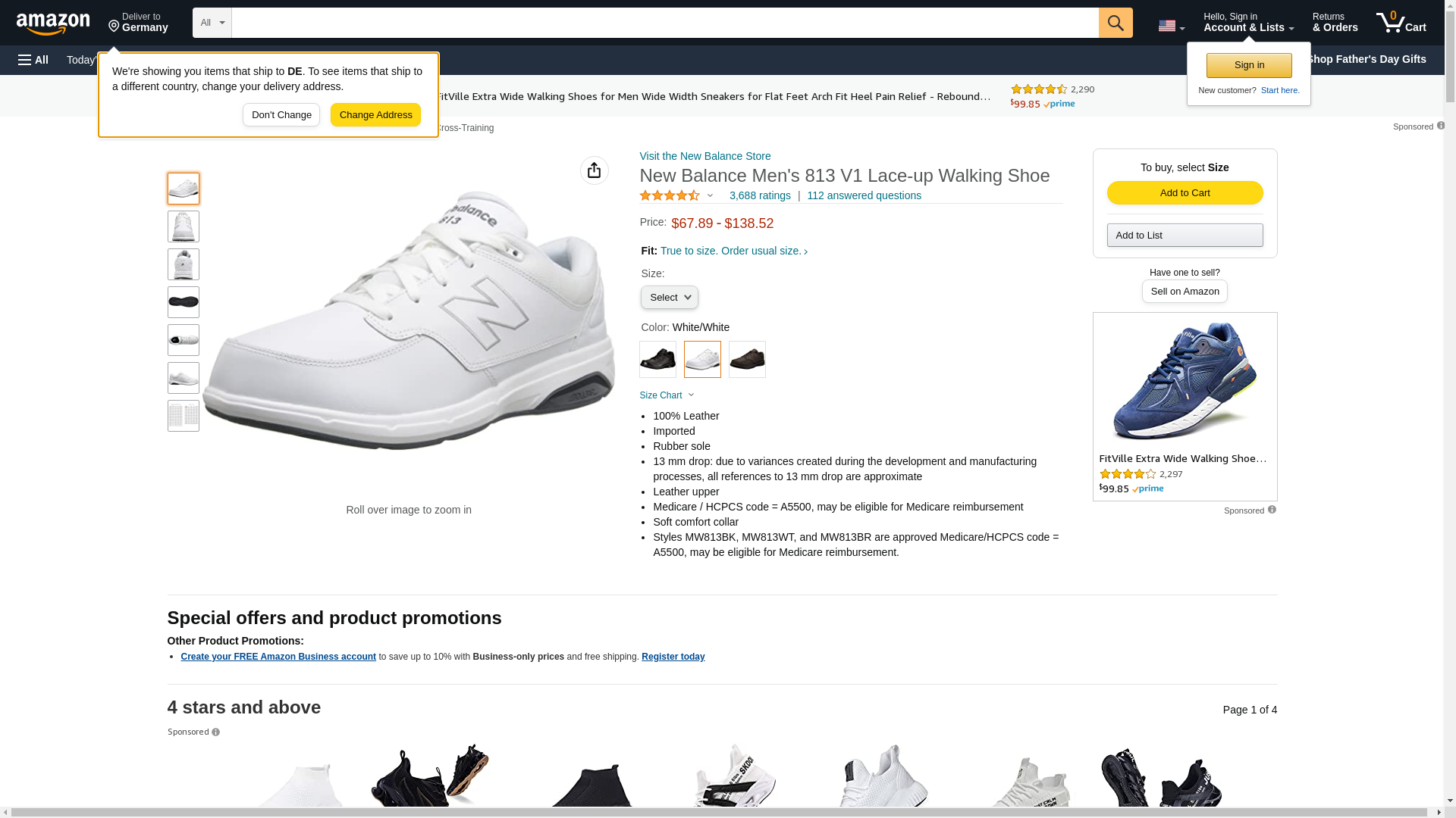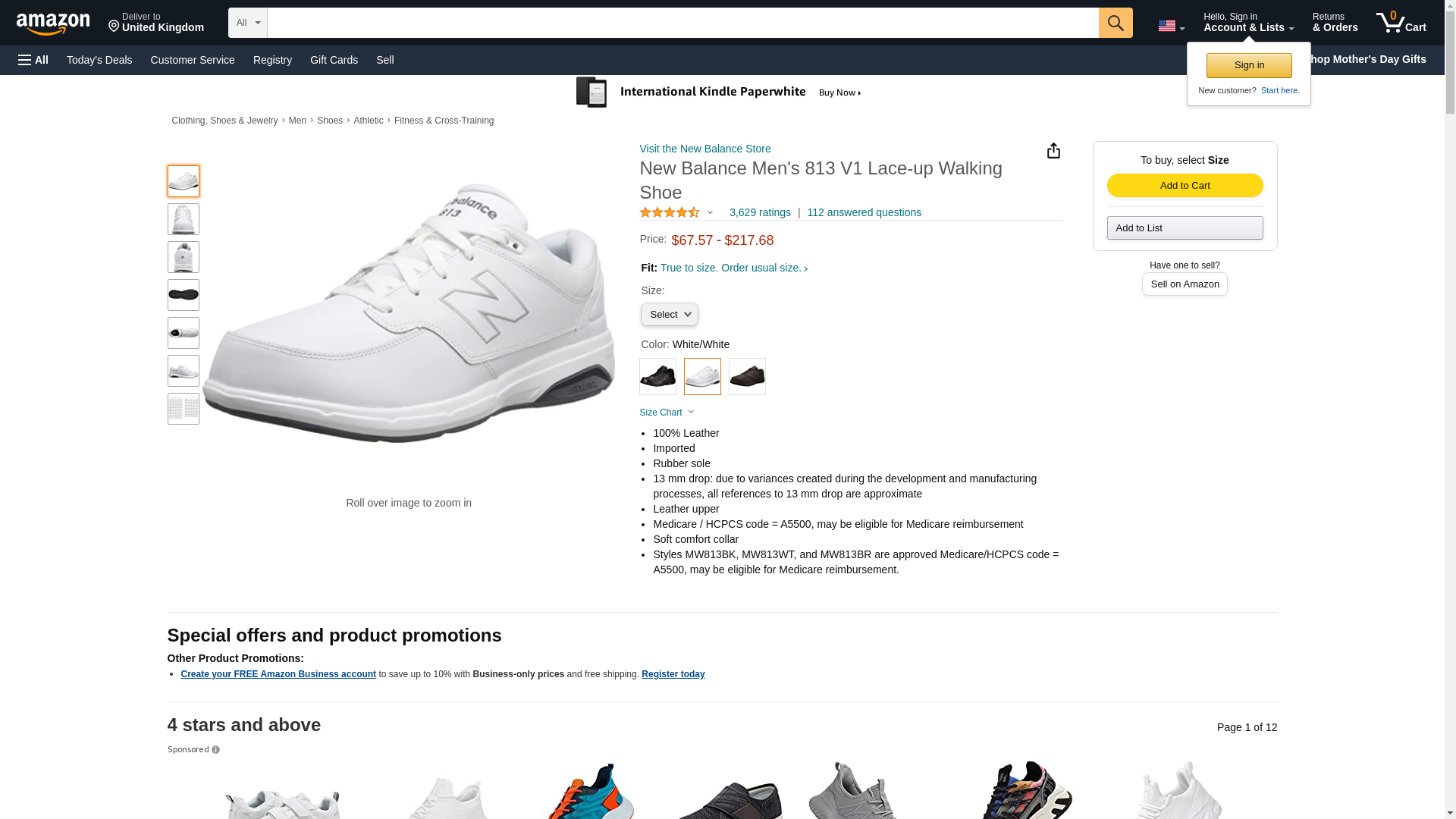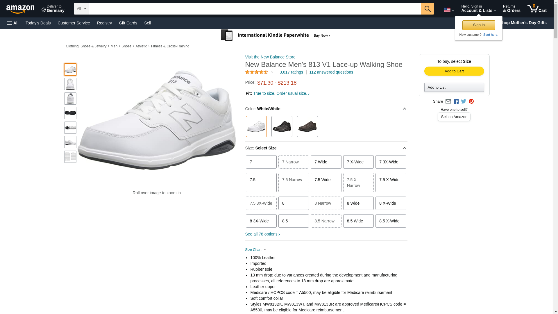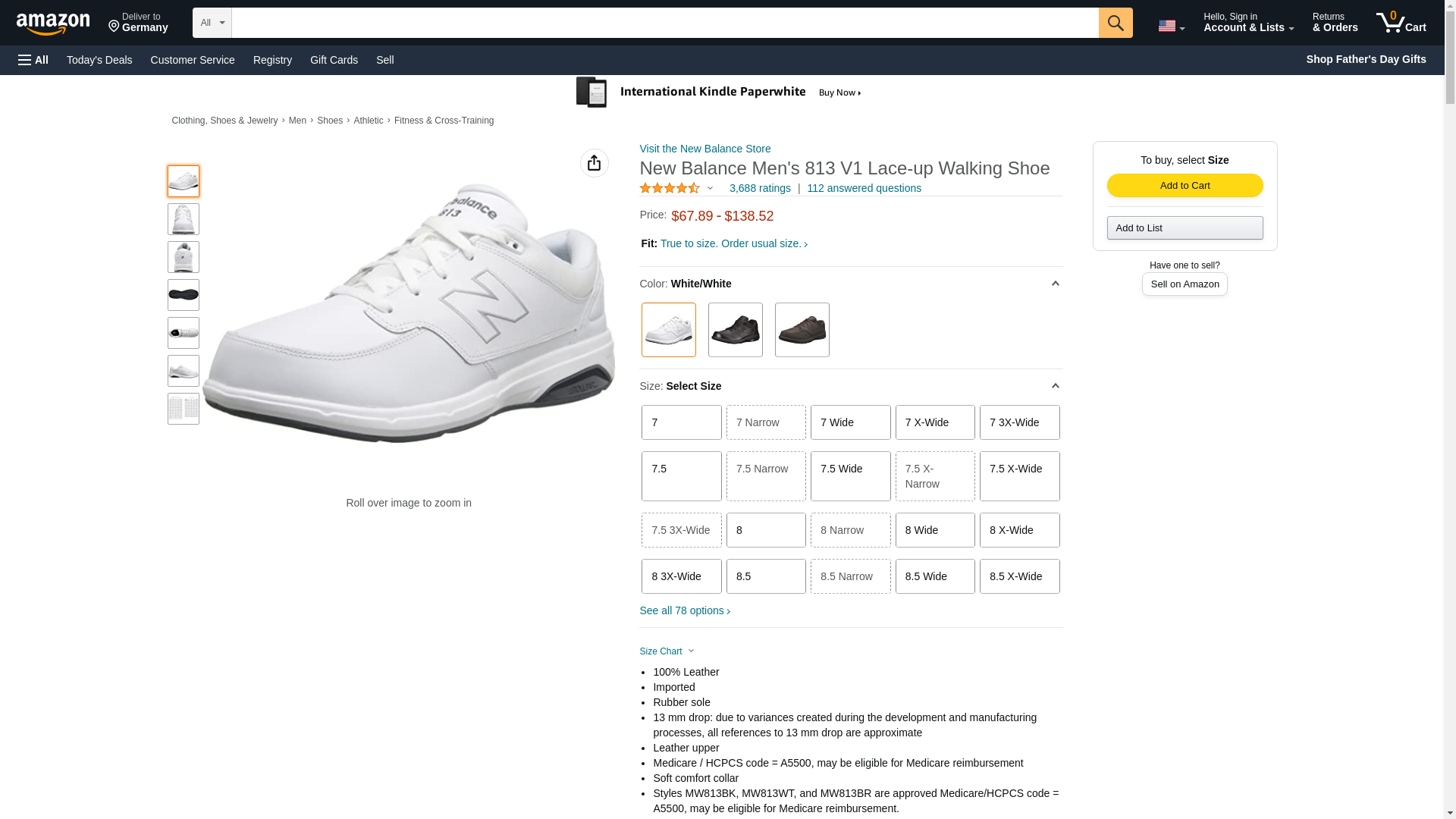New Balance Men's MW813 Athletic Walking Shoe, Size: 9 Width: D Color: White