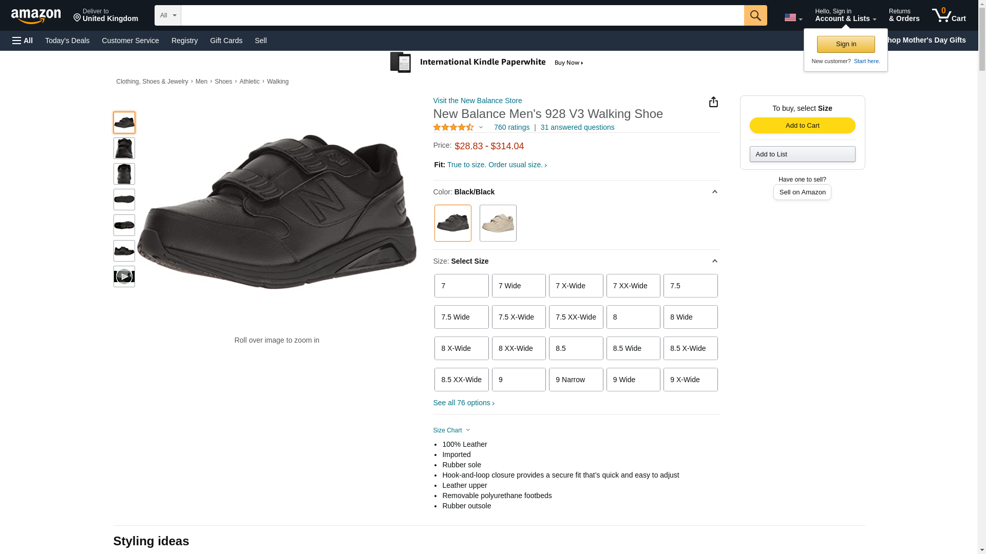 New Balance Men's Mens 928v3 Walking Shoe Walking Shoe, Black/Black, 7.5 2E US