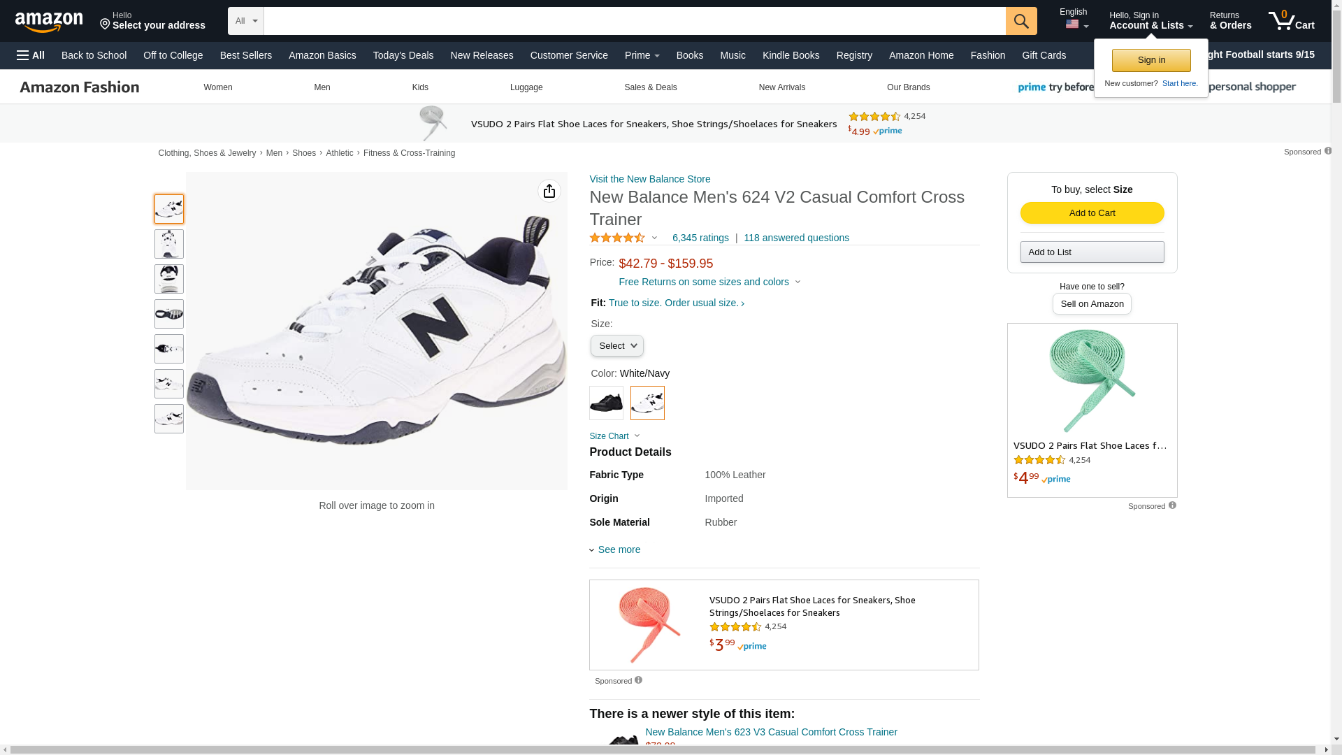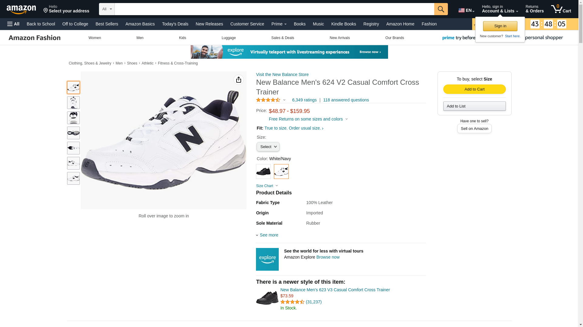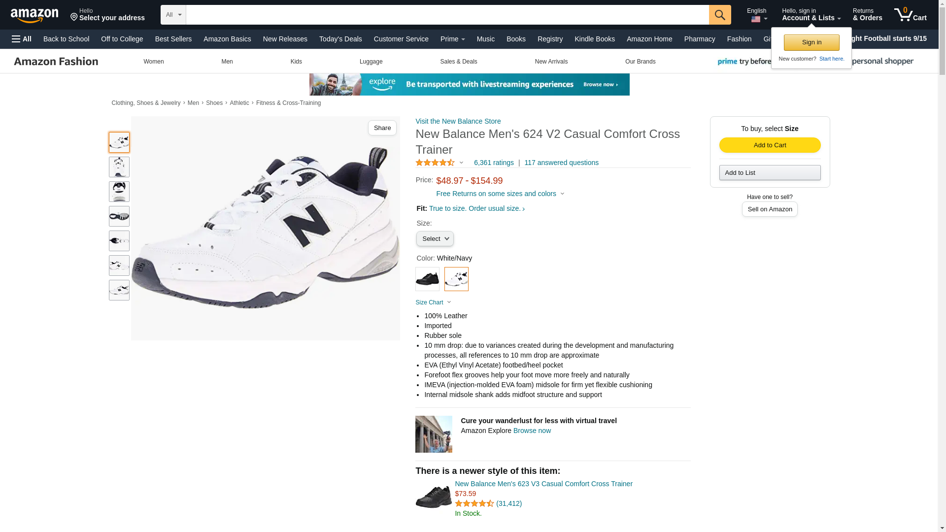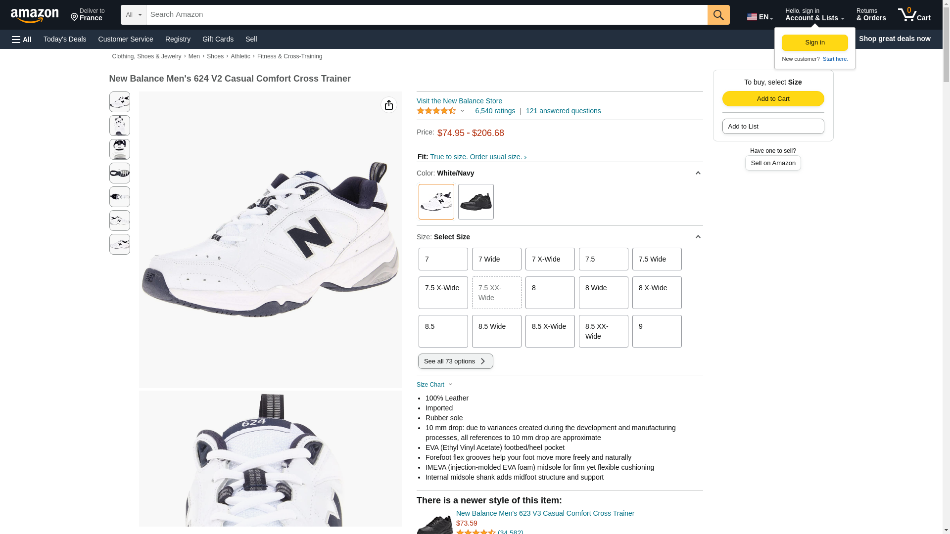 New Balance Men's 624 V2 Casual Comfort Cross Trainer, White/Navy, 9 M US