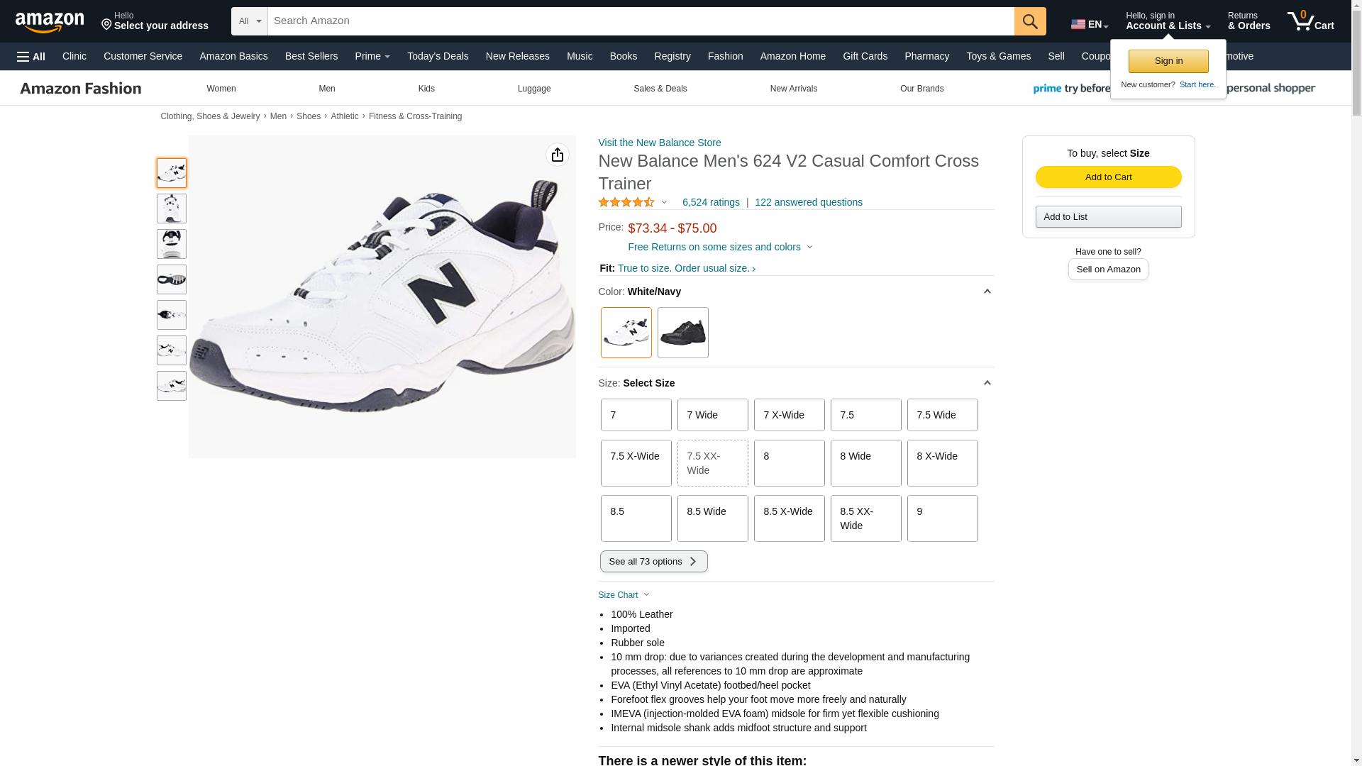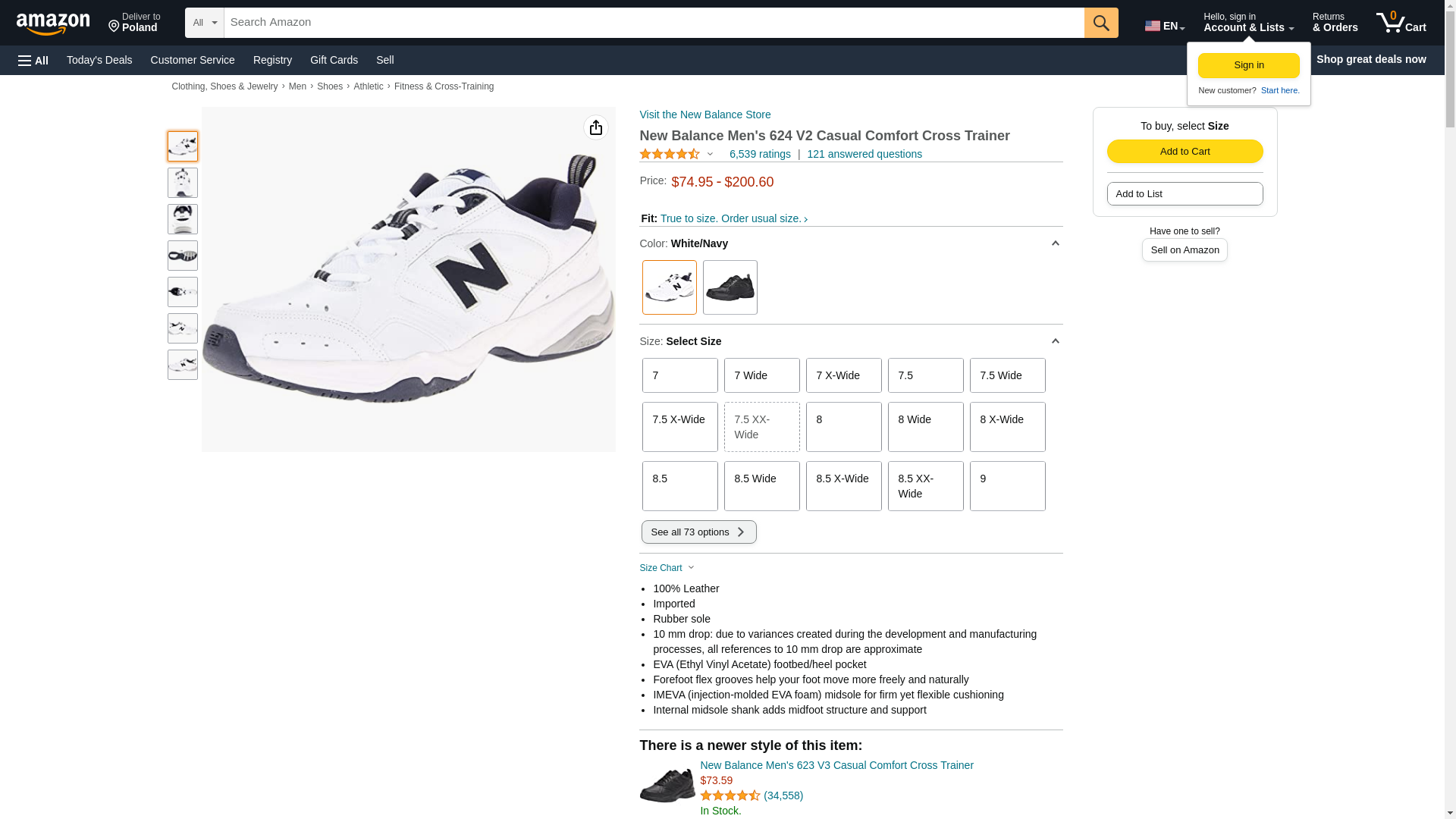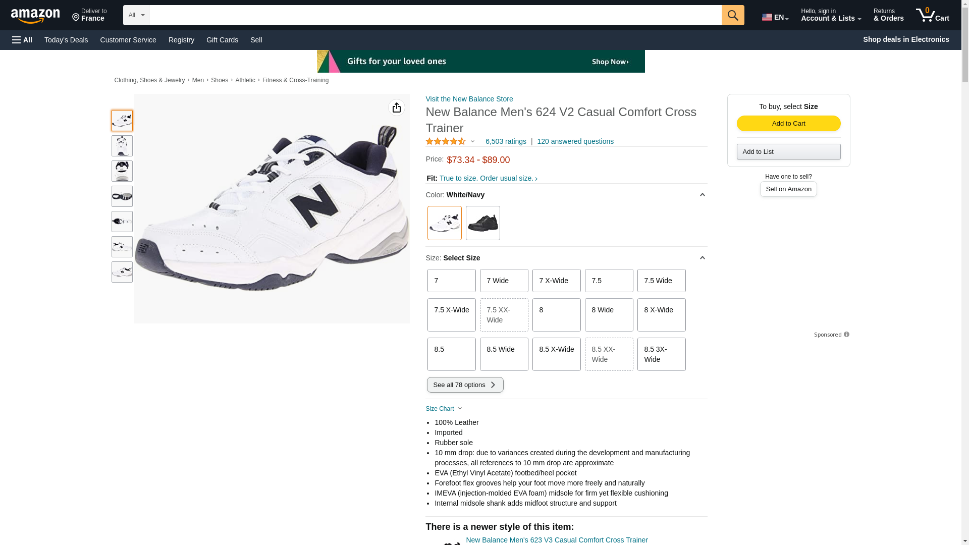 New Balance Men's 624 V2 Casual Comfort Cross Trainer, White/Navy, 9.5 M US