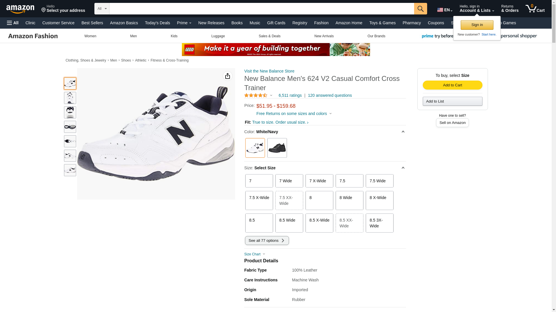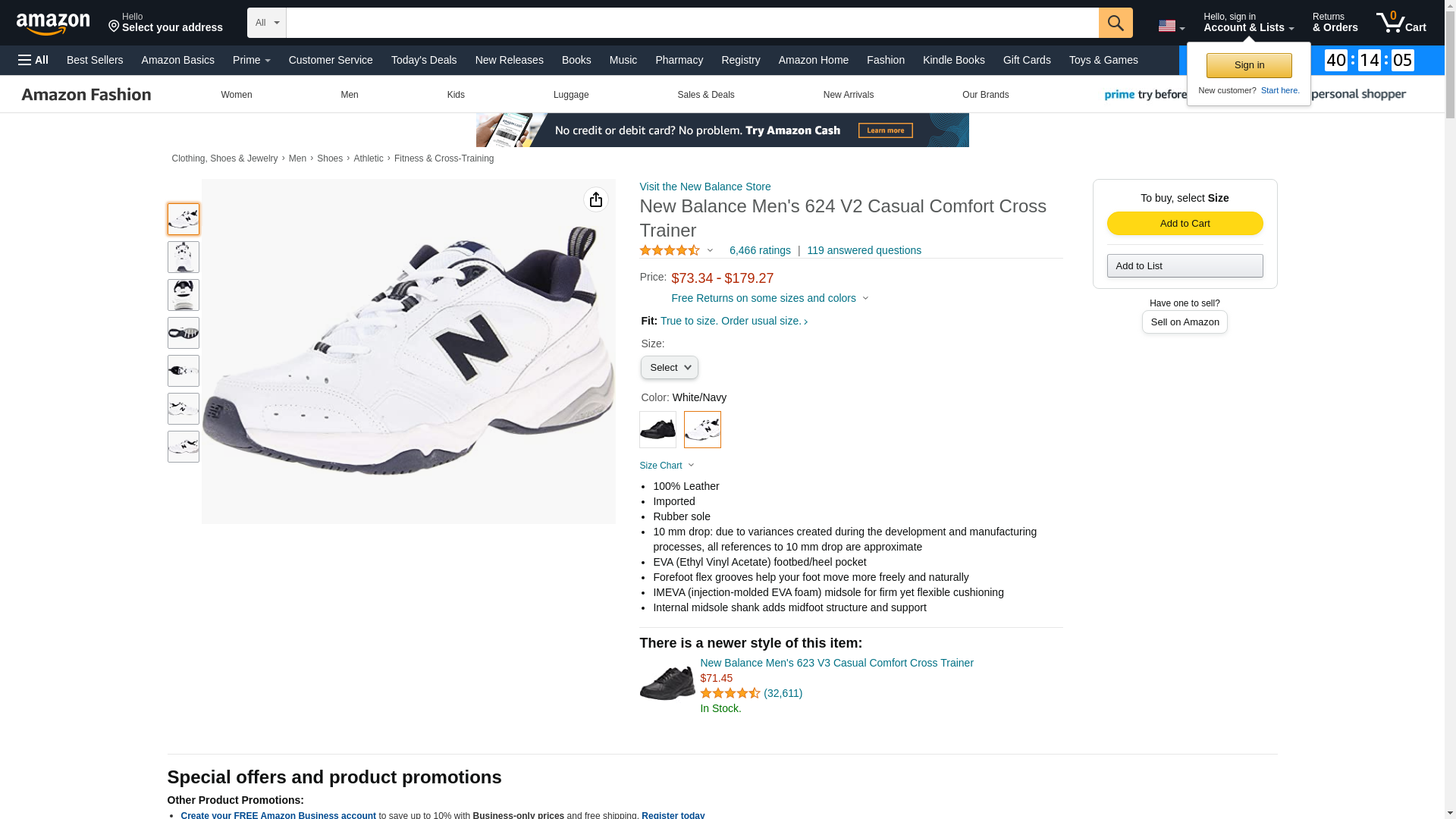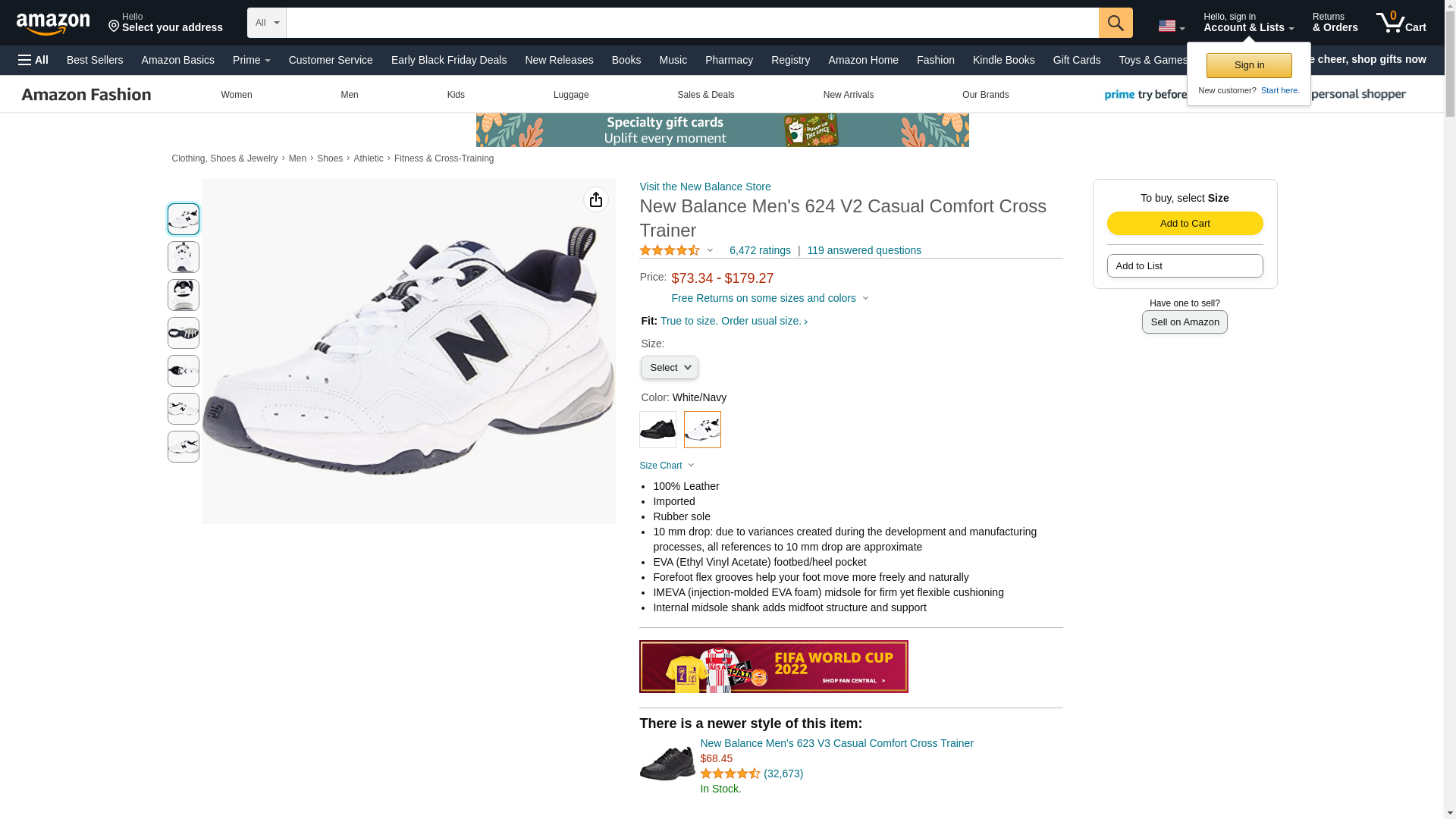 New Balance Men's 624 V2 Casual Comfort Cross Trainer, White/Navy, 11 M US