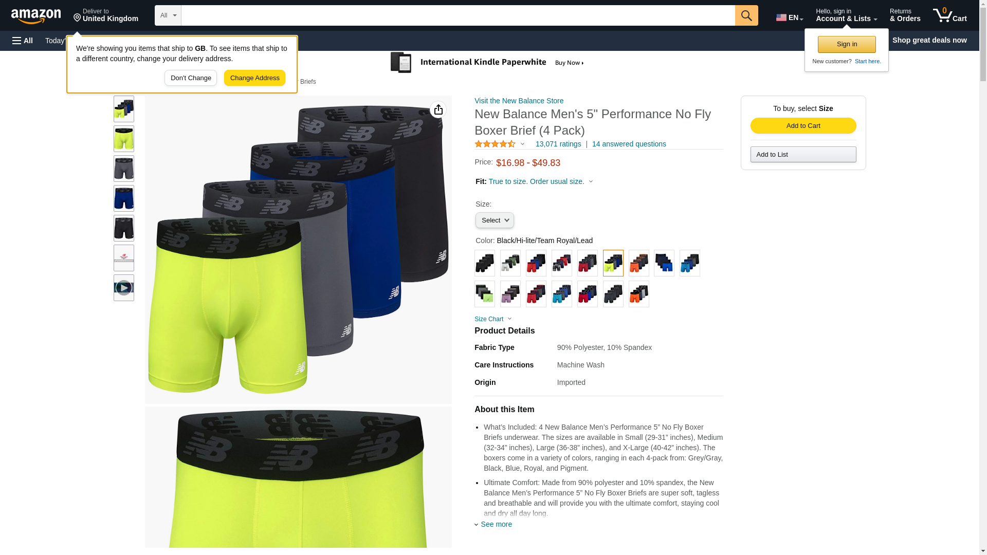 - What’s Included: 4 New Balance Men’s Performance 5” No Fly Boxer Briefs underwear. The sizes are available in Small (29-31” inches), Medium (32-34” inches), Large (36-38” inches), X-Large (40-42” inches) and XX-Large (44-46"). The boxers come in a variety of colors, ranging in each 4-pack from Grey, Black, Blue, Royal, Pigment, Red, Orange, Green and more.