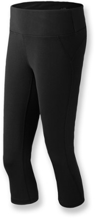 New Balance Premium Performance capris deliver full-on comfort. The nylon / spandex knit has a contoured power-mesh waistband with key pocket, and it sits flat against your waist for a flattering fit.