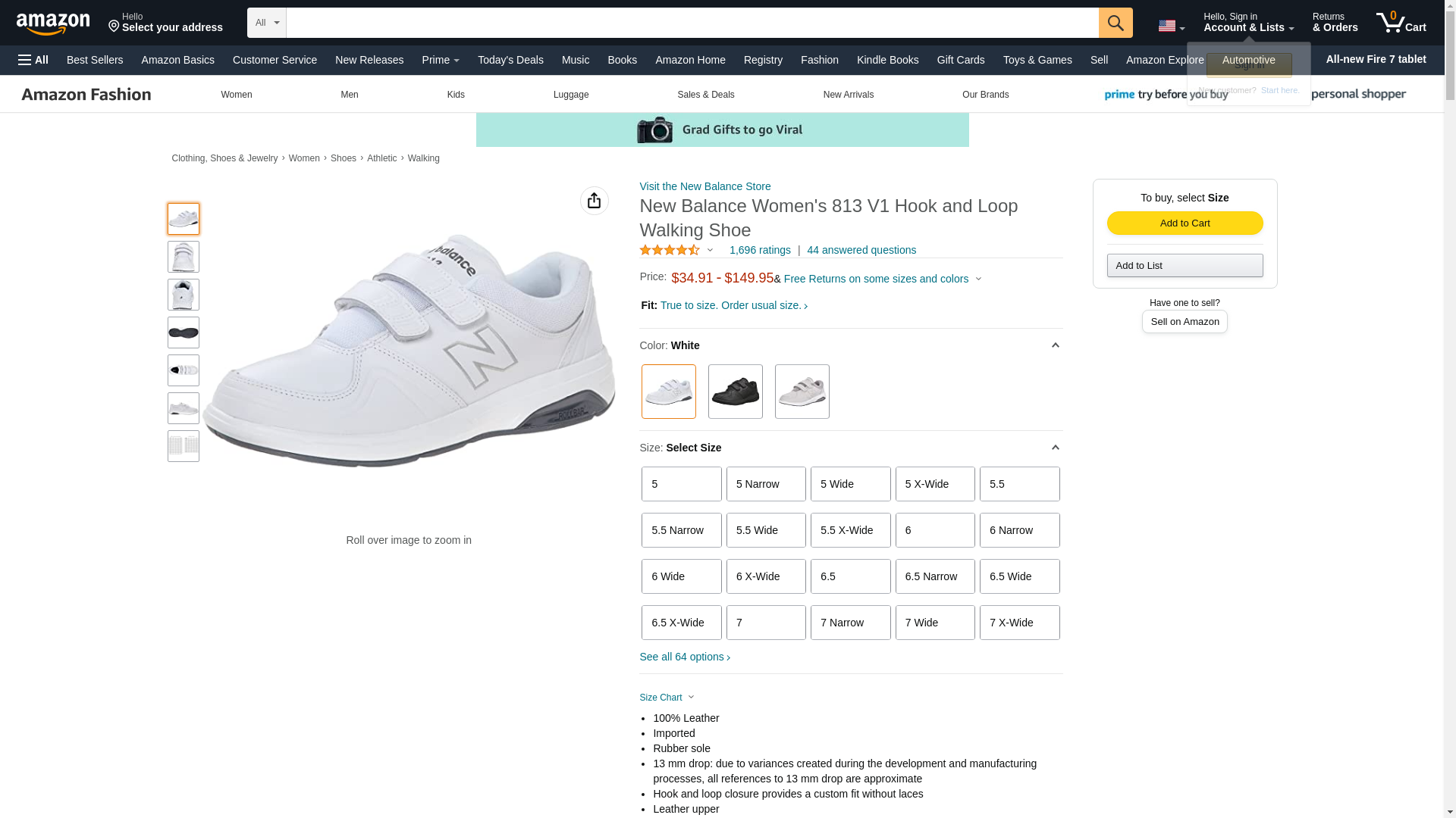 New Balance Women's WW813 Women's Hook and Loop Athletic Walking Shoe, Size: 7.5 Width: D Color: White