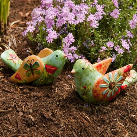 <p>A perfect pair, the <strong>Field of Flowers Ceramic Bird Garden Statue - Set of 2</strong> makes a great addition to your garden. These fine birds are painted by hand with care in lively colors you'll love. They are crafted from ceramic making them great for indoor or outdoor display.</p>