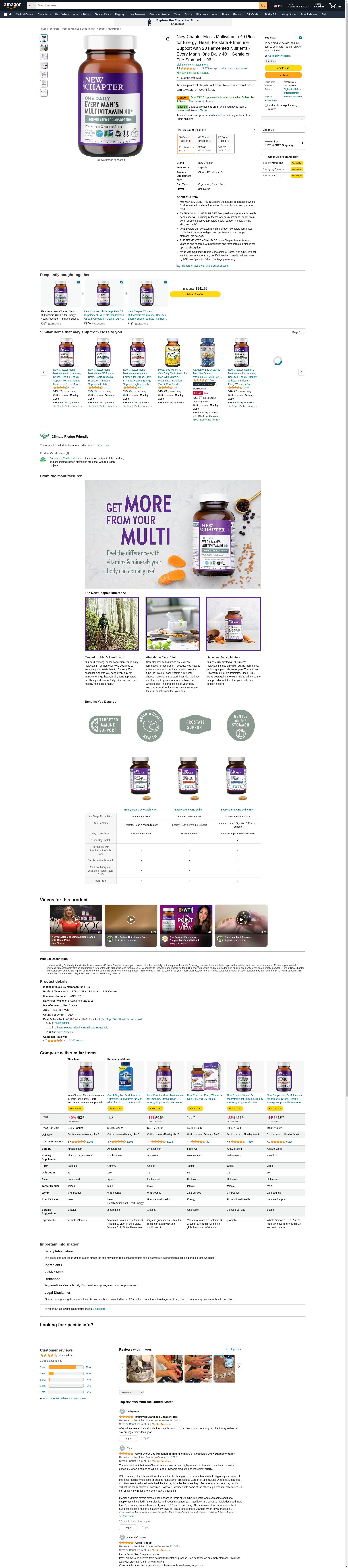 New Chapter Men's Multivitamin 40 Plus for Energy, Heart, Prostate + Immune Support with 20 Fermented Nutrients - Every Man's One Daily 40+, Gentle on The Stomach - 96 ct