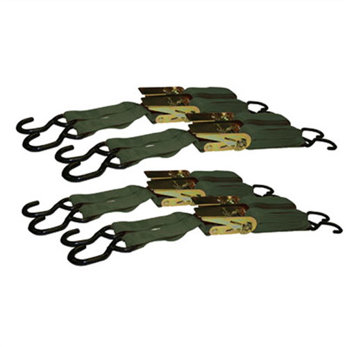 LTD4 by NEW BUFFALO CORPORATION - Ratchet Tie Down Set, 4 Piece, 1" Wide x 15' Long, Adjustable, with Vinyl Coated Hooks