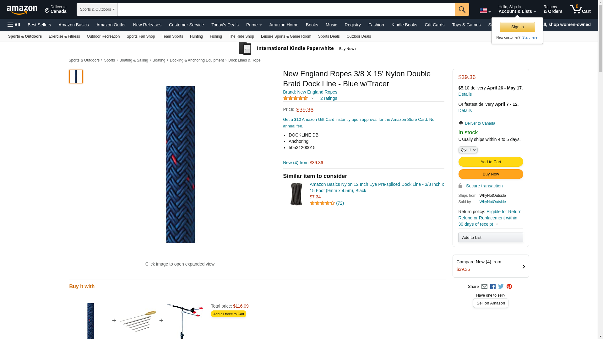 NEW ENGLAND ROPES325-50531200015 DOCKLINE DB 3/8 X 15FT BLUE