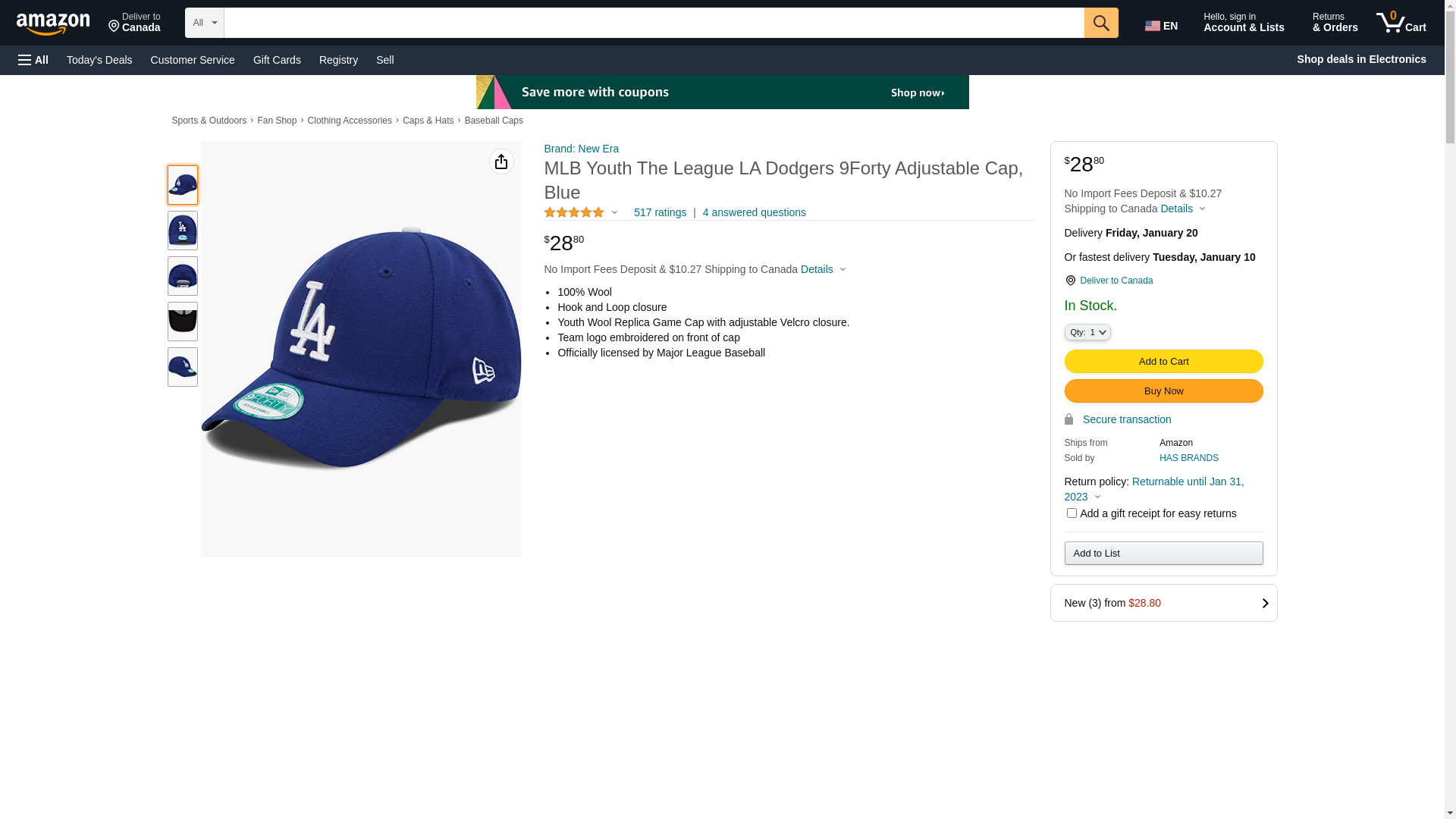 MLB Youth The League LA Dodgers 9Forty Adjustable Cap, Blue