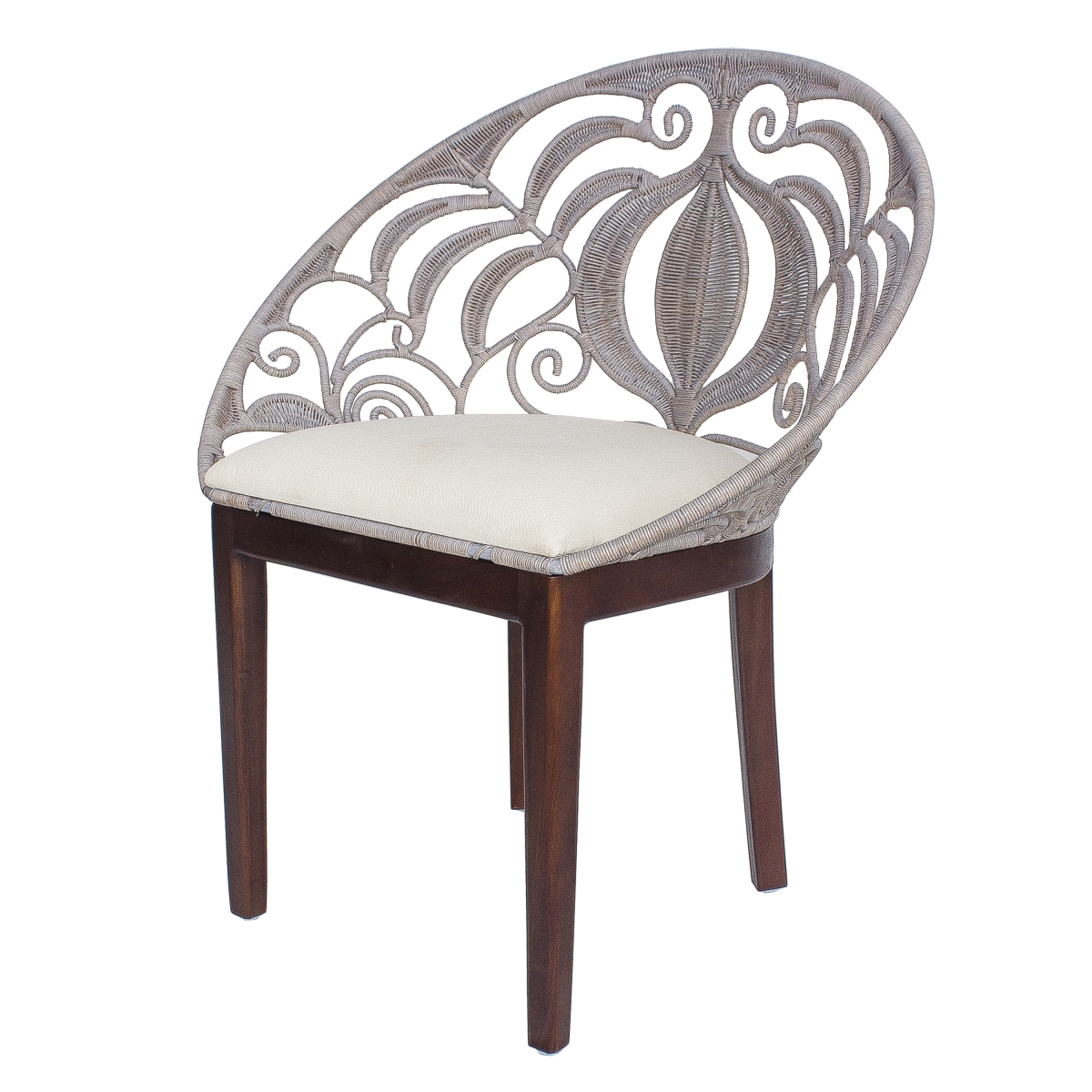 New Pacific Direct 1040002 Ambrosia Rattan Chair Dark Brown Legs, Washed Gray