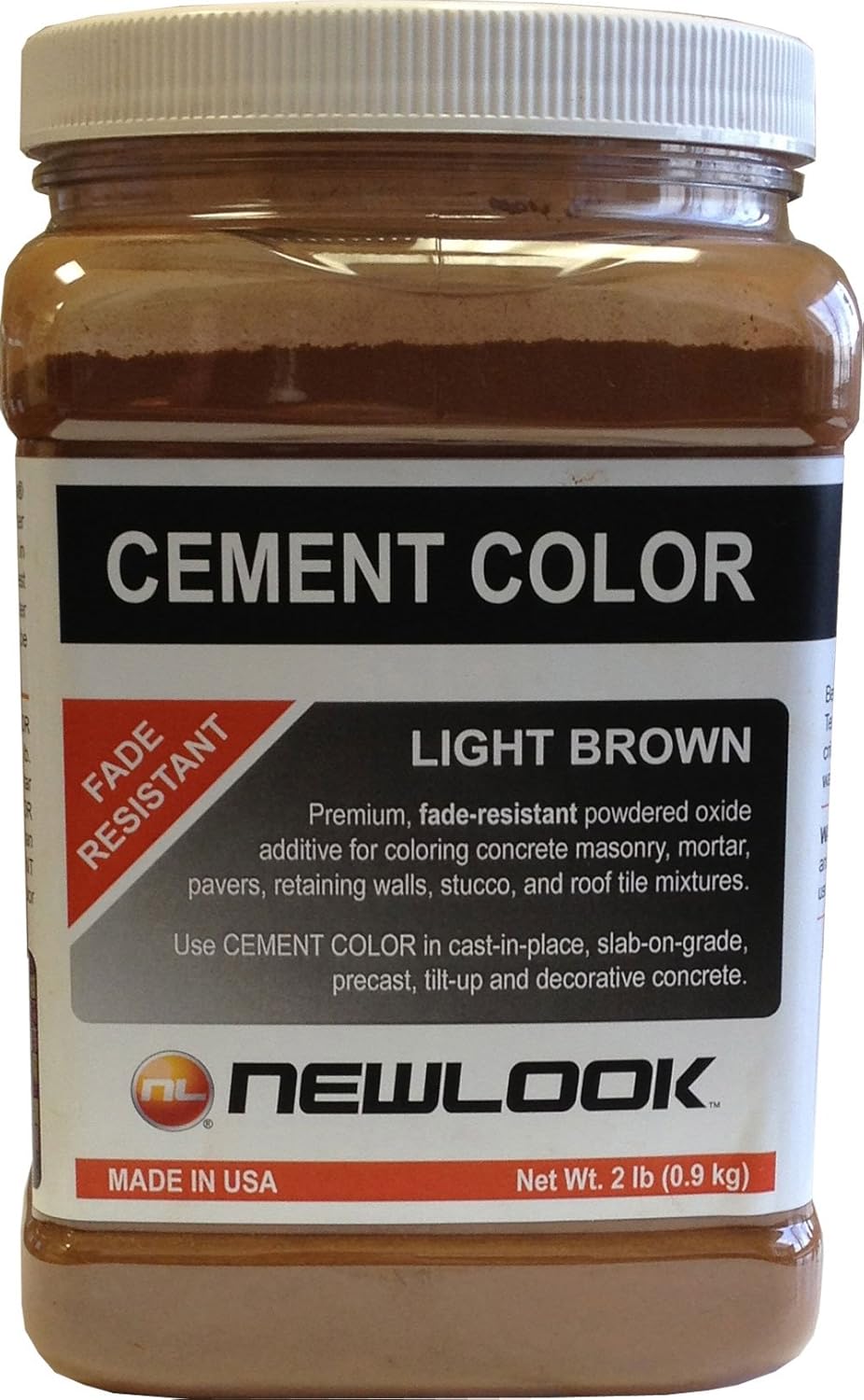 Add gorgeous, natural color to your cement and masonry projects with NewLook 2 lb. Light Brown Fade Resistant CEMENT COLOR. The premium synthetic mineral oxide powder is an integral color additive used for tinting a wide range of materials and mixtures. The powder pigment mixes into any concrete mixture, transforming it into an aesthetic design feature for building and paving projects or to increase curb appeal around the home. A ready-to use powder, NewLook CEMENT COLOR can be mixed into any 94 lb. bag of cement mixture, or other bag sizes depending on color strength. Refer to the technical data sheet for mixture ratios and dosage strength.