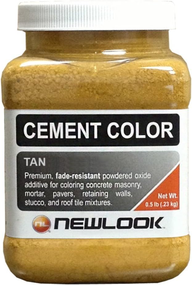 Add gorgeous, natural color to your cement and masonry projects with NewLook 0.5 lb. Tan Fade Resistant CEMENT COLOR. The premium synthetic mineral oxide powder is an integral color additive used for tinting a wide range of materials and mixtures. The powder pigment mixes into any concrete mixture, transforming it into an aesthetic design feature for building and paving projects or to increase curb appeal around the home. A ready-to use powder, NewLook CEMENT COLOR can be mixed into any 94 lb. bag of cement mixture, or other bag sizes depending on color strength. Refer to the technical data sheet for mixture ratios and dosage strength.