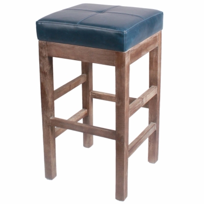 New Pacific Direct Valencia Backless Bonded Leather Counter Stool 27",Distressed Brown Legs,Vintage Blue