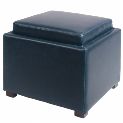 New Pacific Direct Cameron Square Bonded Leather Storage Ottoman Furniture, Vintage Blue